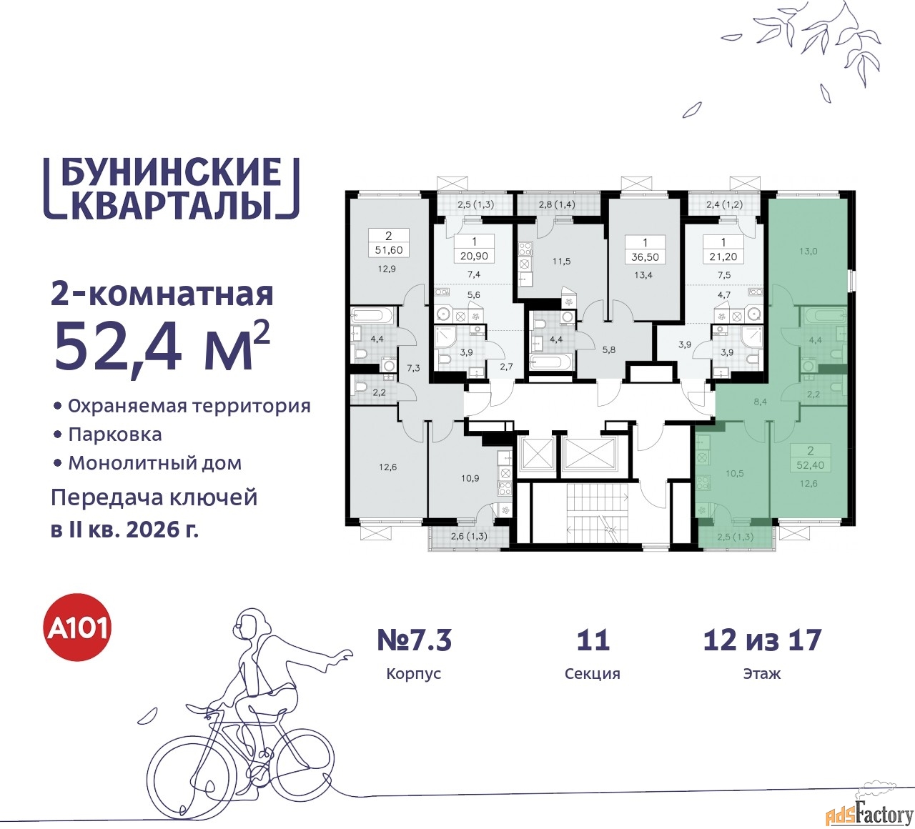 | Общая площадь (кв.м) | 52.4 |