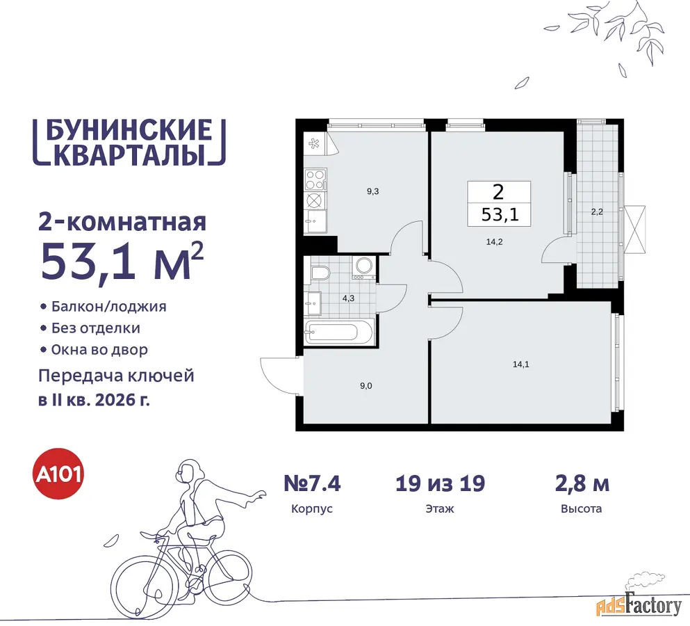 Квартира находится в корпусе 7.4. Дом монолитный, одноподъездный, высотой 19 этажей. На этаже 10 квартир. В подъезде 1 пассажирский и 1 грузовой лифт. Начало строительства - 4 квартал 2023 года. Окончание строительства - 2 квартал 2026 года. Оформление сделки по договору долевого участия.