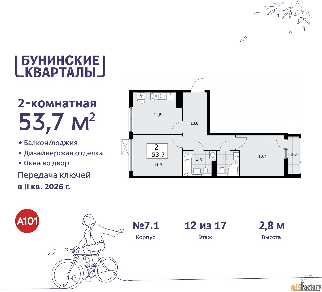 Дом монолитный, многоподъездный, переменной этажности, от 9 до 17 этажей. Квартира находится во 2-й секции высотой 17 этажей в корпусе 7.1. На этаже 7 квартир. В подъезде 1 пассажирский и 1 грузовой лифт. Начало строительства - 4 квартал 2023 года. Окончание строительства - 2 квартал 2026 года. Оформление сделки по договору долевого участия.