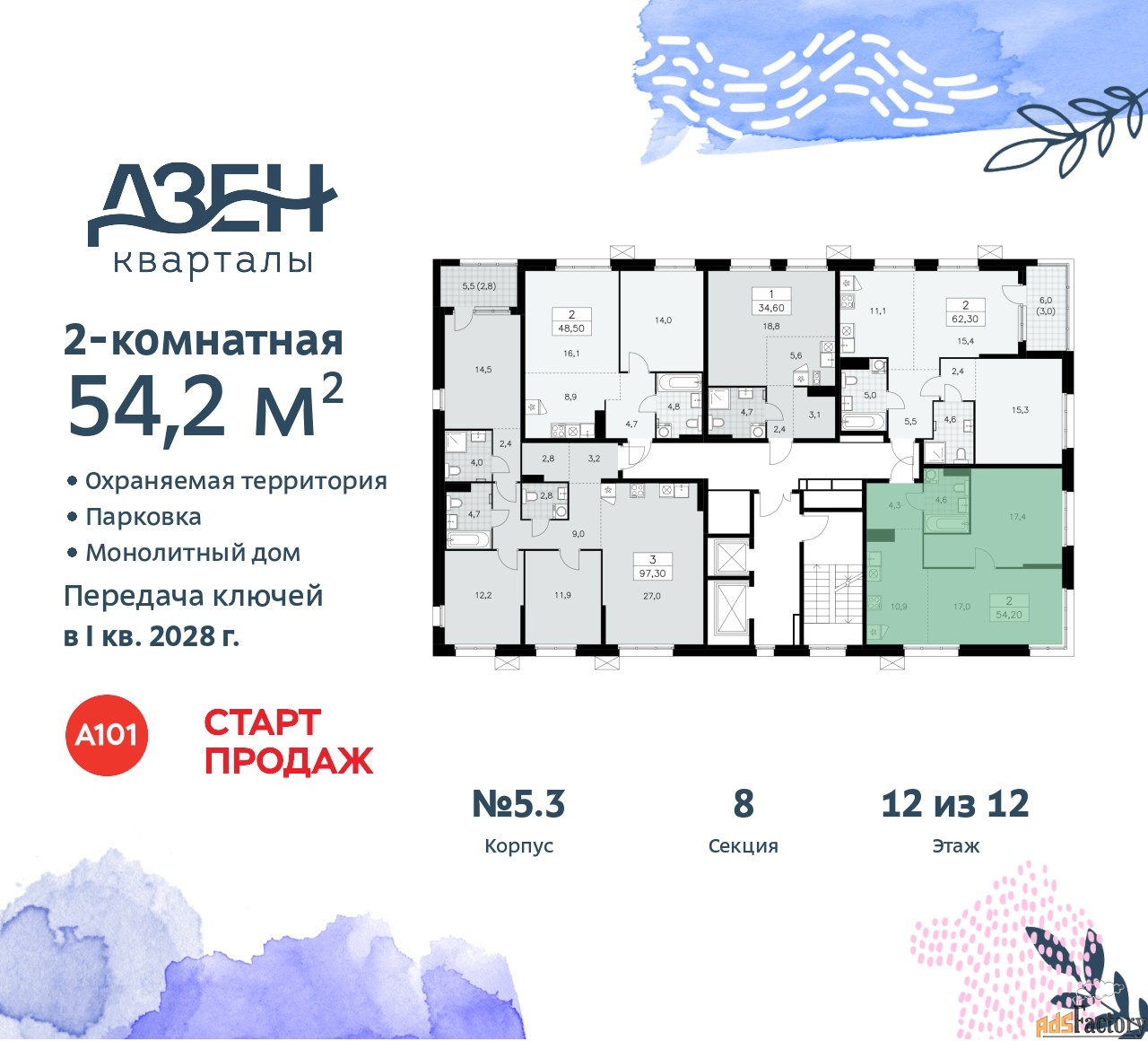| Общая площадь (кв.м) | 54.2 |