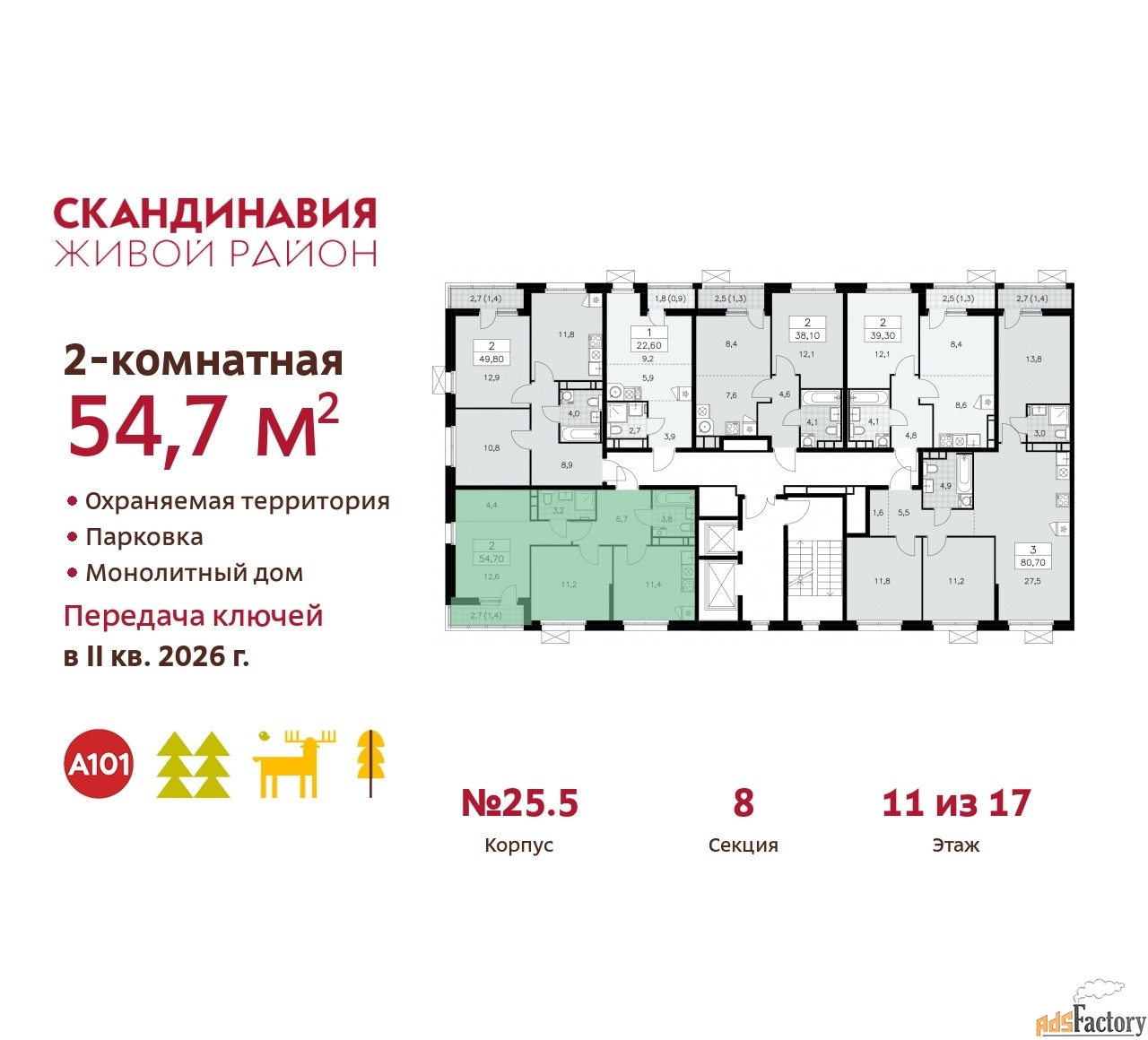 Микрорайон возводится в уже сложившемся районе Новой Москвы, где для детей уже построены детские сады и школа, а для взрослых работают магазины, банки и кафе. (AQID02283666)