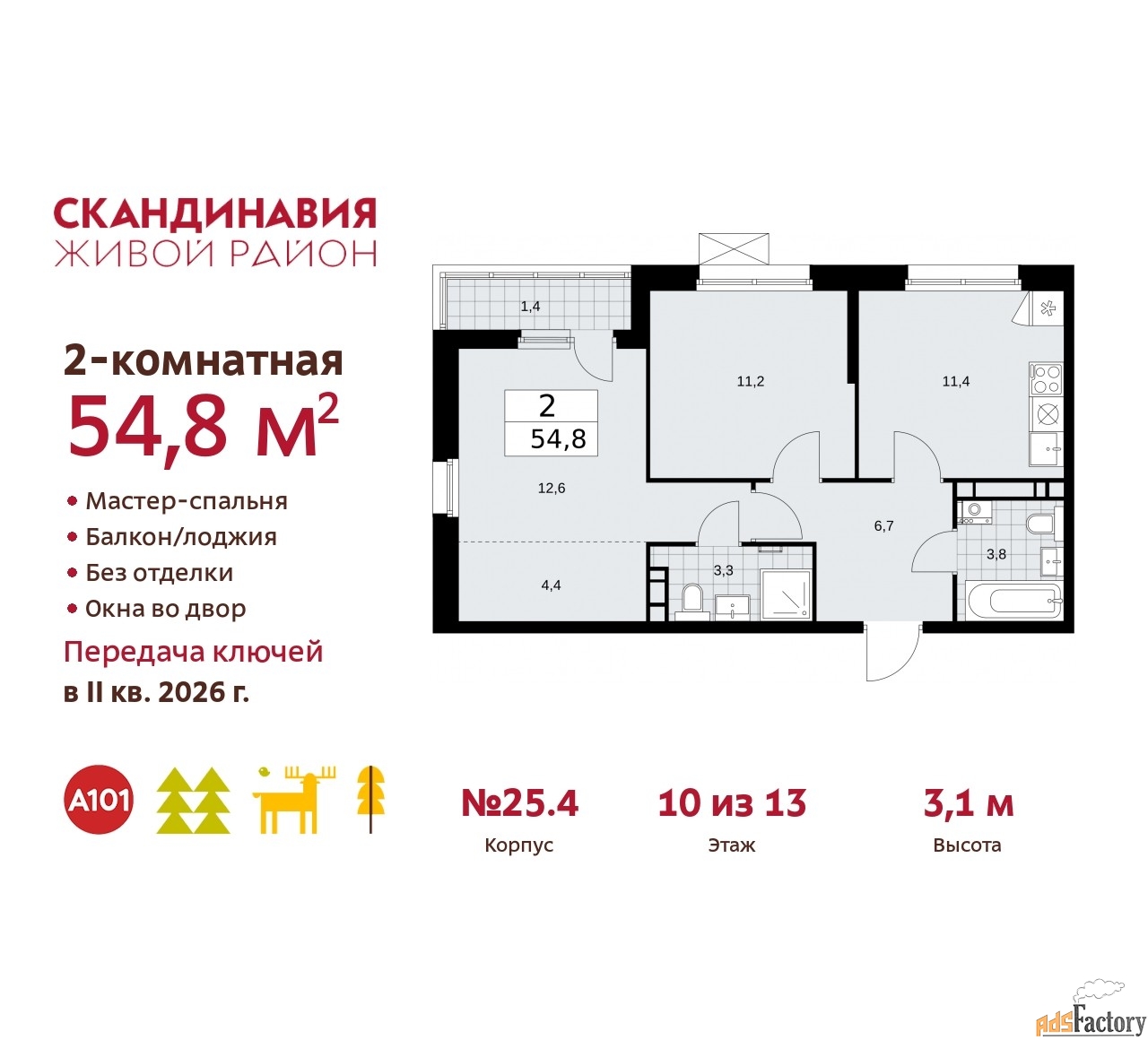 | Общая площадь (кв.м) | 54.8 |