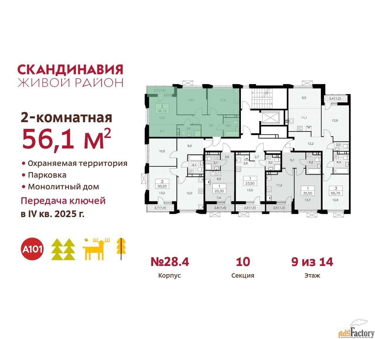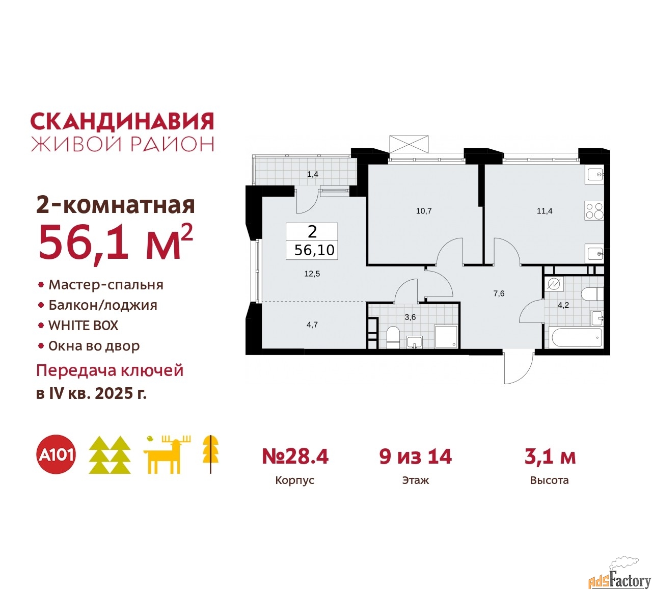 Дом монолитный, черырехподъездный, переменной этажности, от 9 до 14 этажей. Квартира находится в 4-й секции высотой 9 этажей в корпусе бизнес-класса 28.4. На этаже 6 квартир. В подъезде 1 пассажирский и 1 грузовой лифт. Начало строительства - 2 квартал 2023 года. Окончание строительства - 1 квартал 2026 года. Оформление сделки по договору долевого участия.