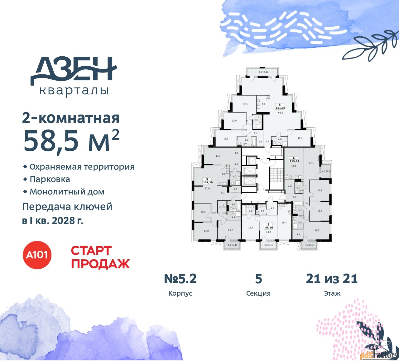 Артикул квартиры по базе застройщика 41К-5.2-277.