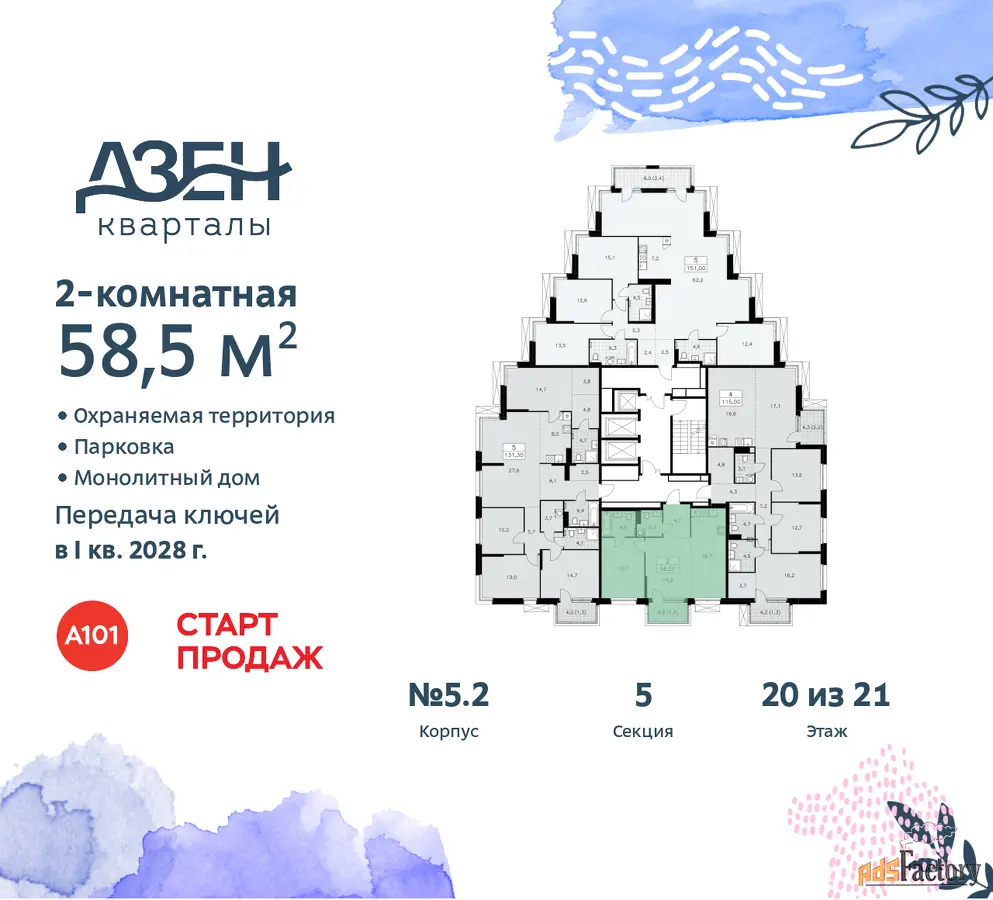 Квартира находится в корпусе 5.2. Дом монолитный, одноподъездный, высотой 21 этаж. На этаже 6 квартир. В подъезде 1 пассажирский и 2 грузовых лифта. Начало строительства - 3 квартал 2025 года. Окончание строительства - 1 квартал 2028 года. Оформление сделки по договору долевого участия.