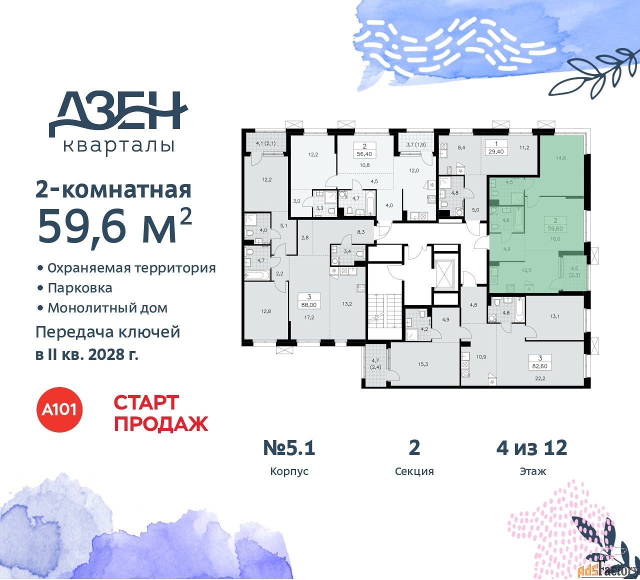 | Общая площадь (кв.м) | 59.6 |