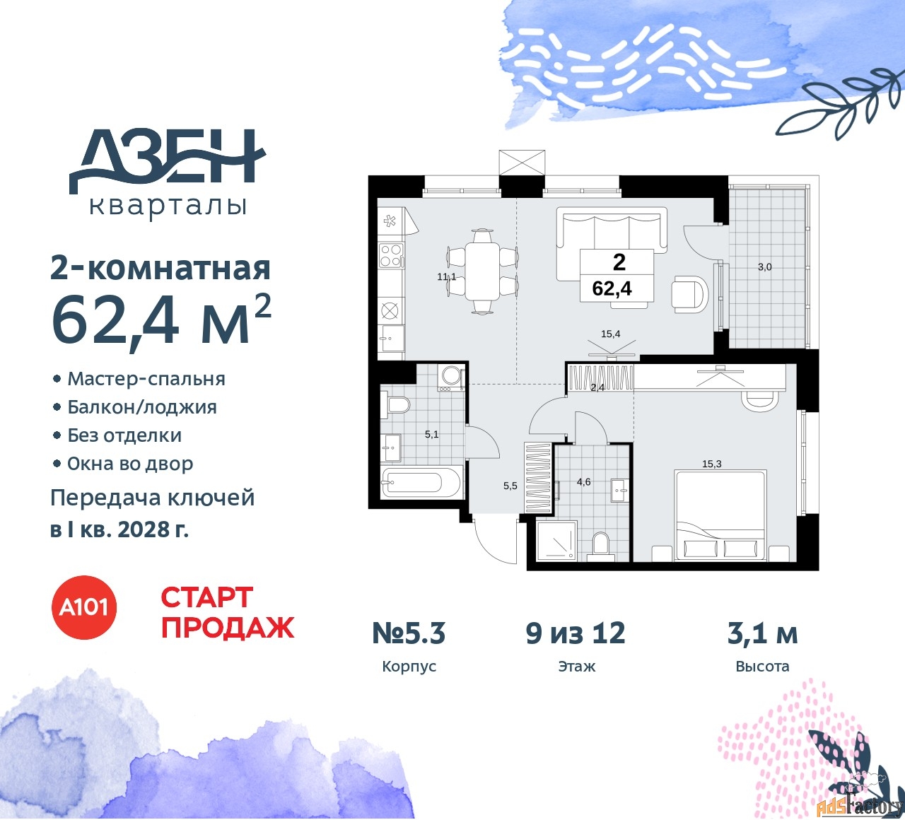 | Общая площадь (кв.м) | 62.4 |