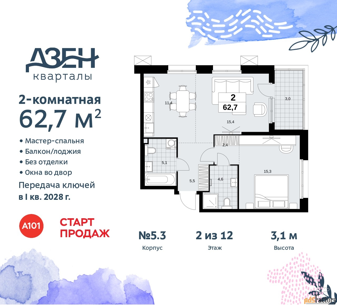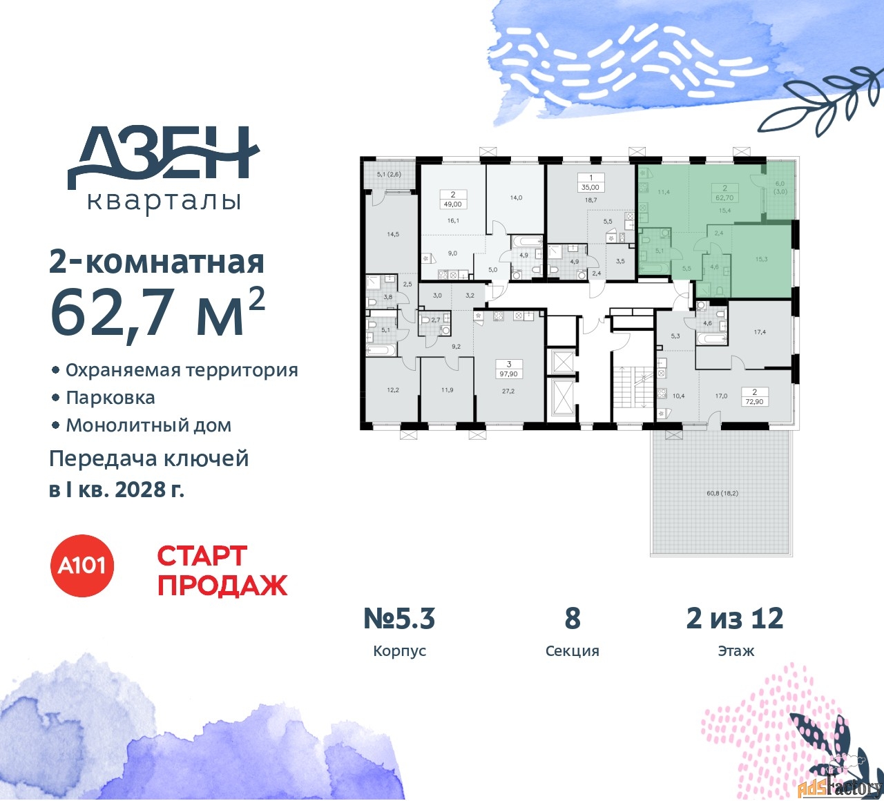 | Общая площадь (кв.м) | 62.7 |