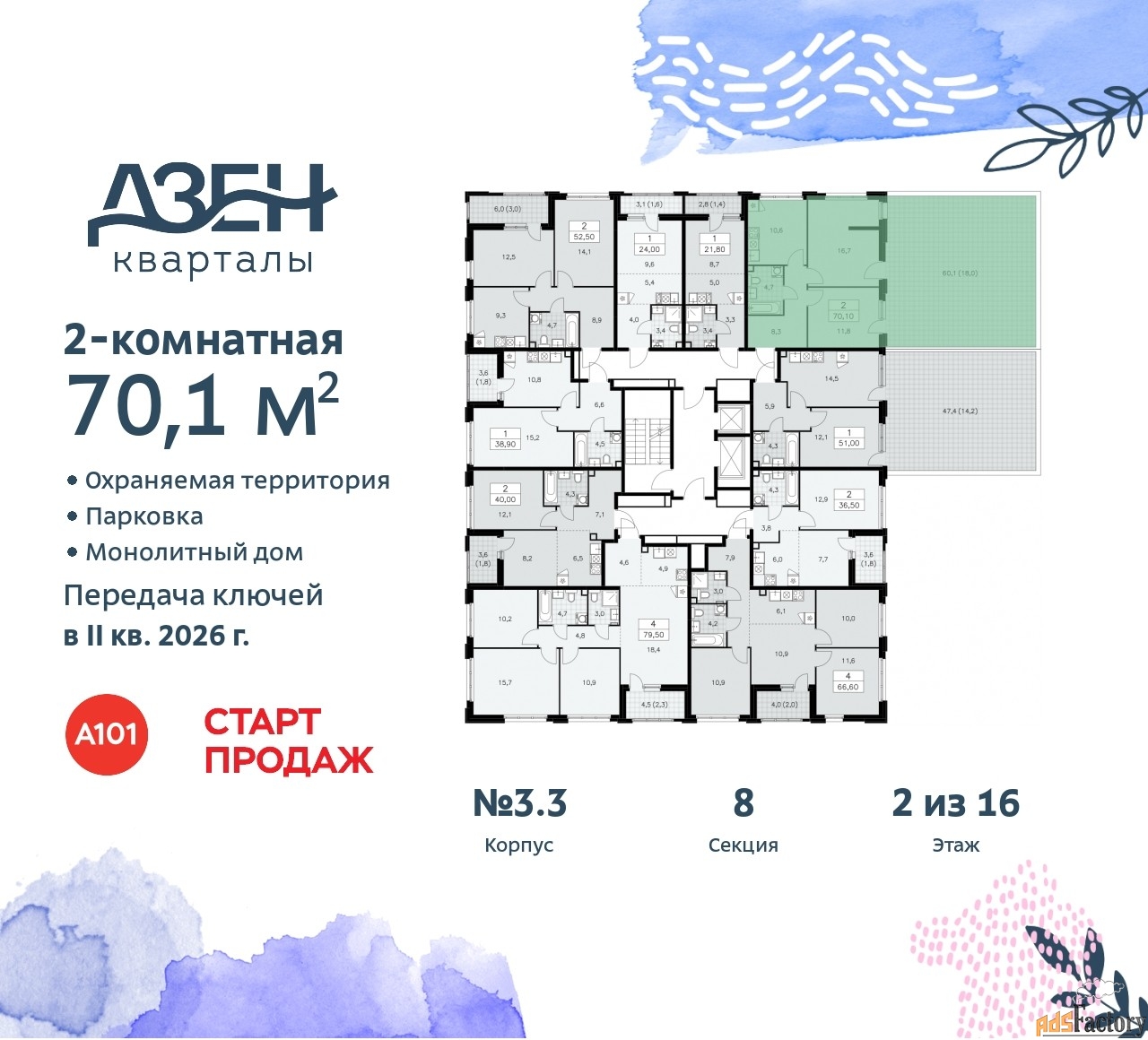 | Общая площадь (кв.м) | 70.1 |