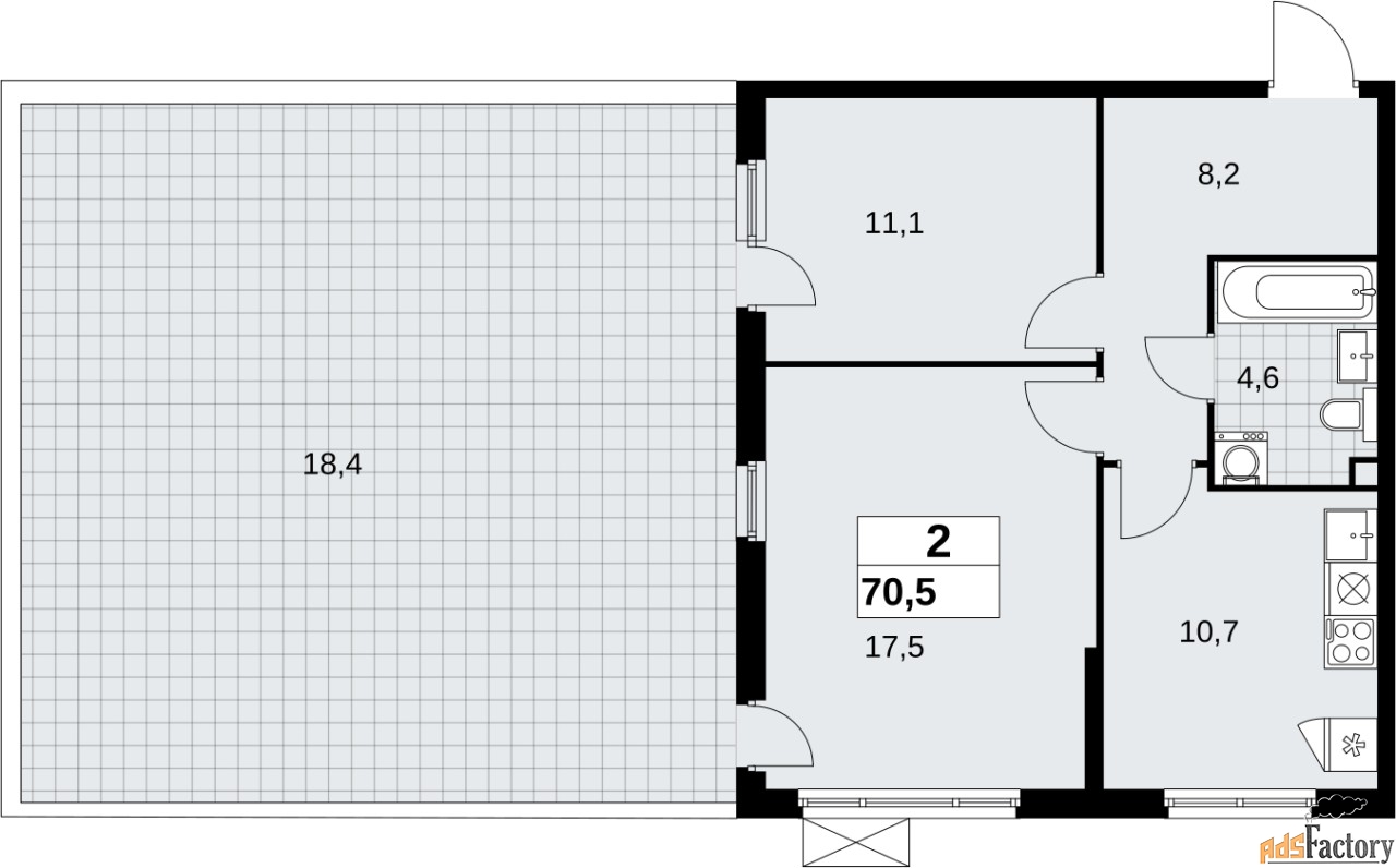 Эта квартира предлагается без отделки. Будут установлены стеклопакеты с повышенной тепло- и шумоизоляцией, в квартиру заведены все коммуникации. Вы сможете в полном объеме реализовать ваши идеи обустройства вашего комфортного дома.