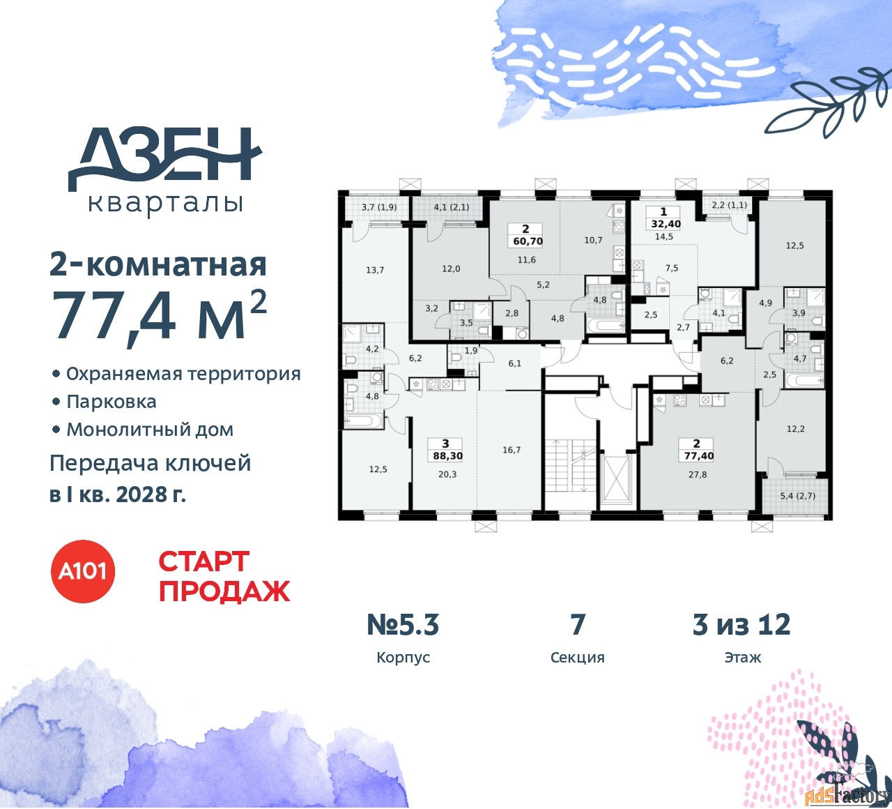 | Общая площадь (кв.м) | 77.4 |