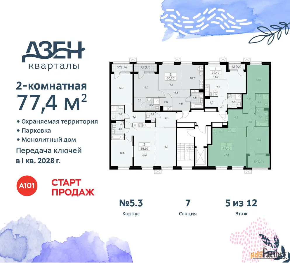 | Общая площадь (кв.м) | 77.4 |