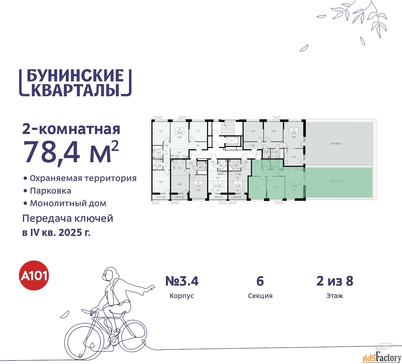 Дом монолитный, двухподъездный, высотой 8 этажей. Квартира находится во 2-й секции в корпусе 3.4. На этаже 6 квартир. В подъезде 1 грузовой лифт. Начало строительства - 2 квартал 2023 года. Строительство окончено, дом сдан в 4 квартале 2025 года. Оформление сделки по договору купли-продажи.
