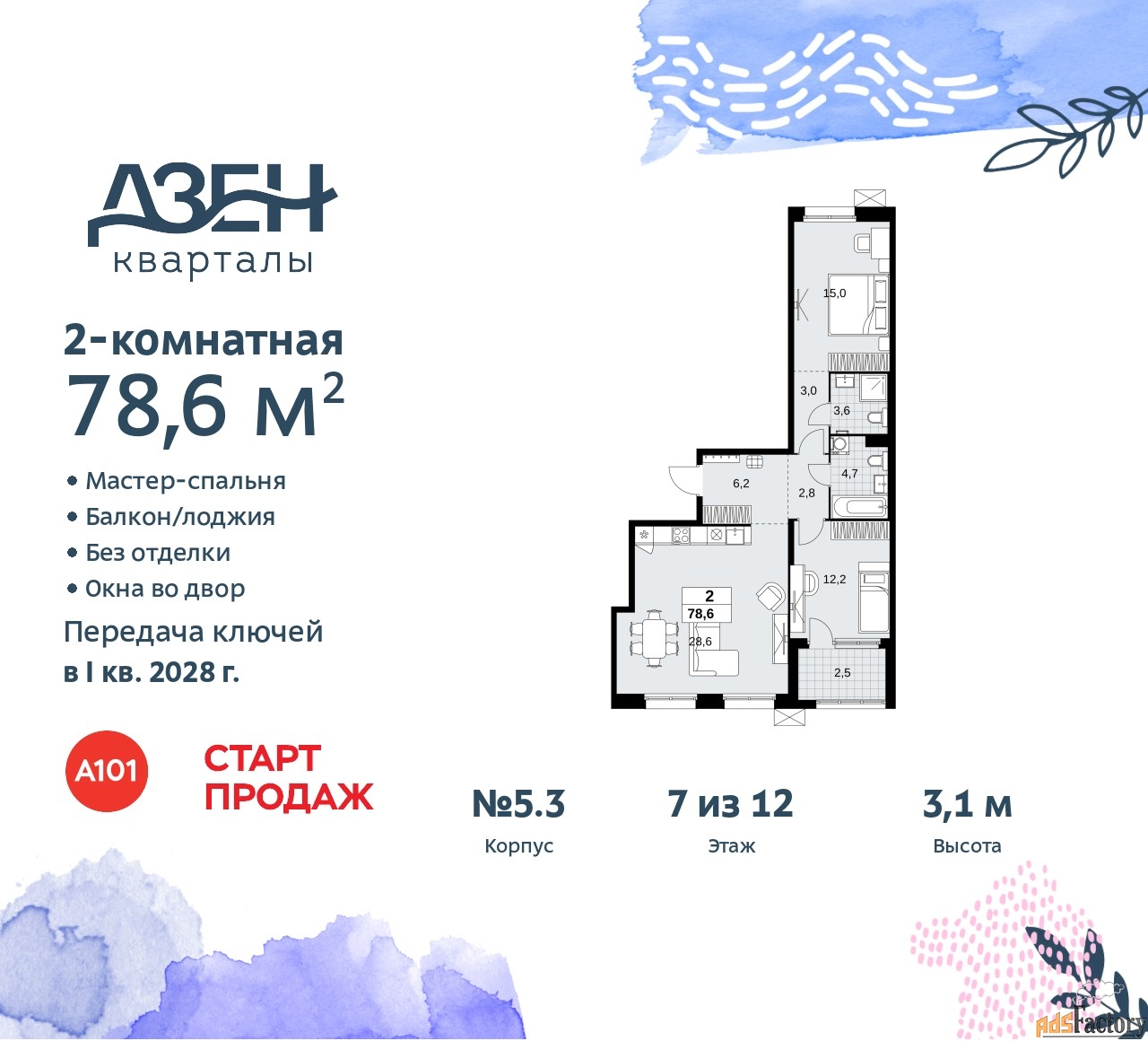 | Общая площадь (кв.м) | 78.6 |