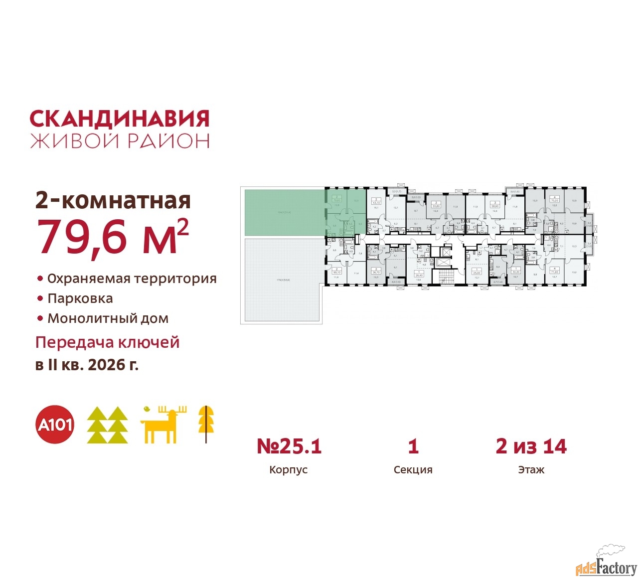 Микрорайон возводится в уже сложившемся районе Новой Москвы, где для детей уже построены детские сады и школа, а для взрослых работают магазины, банки и кафе. (AQID02283313)