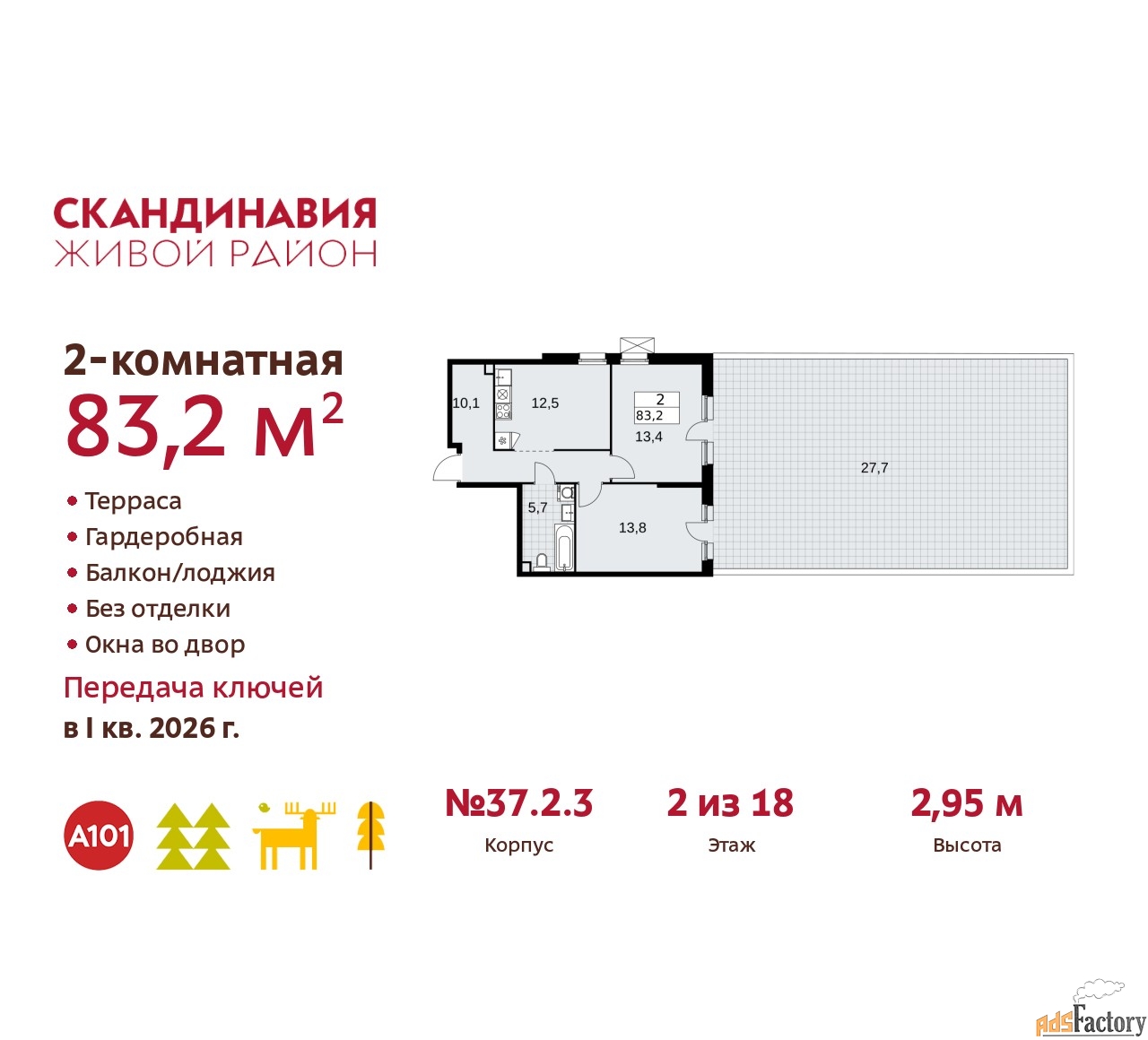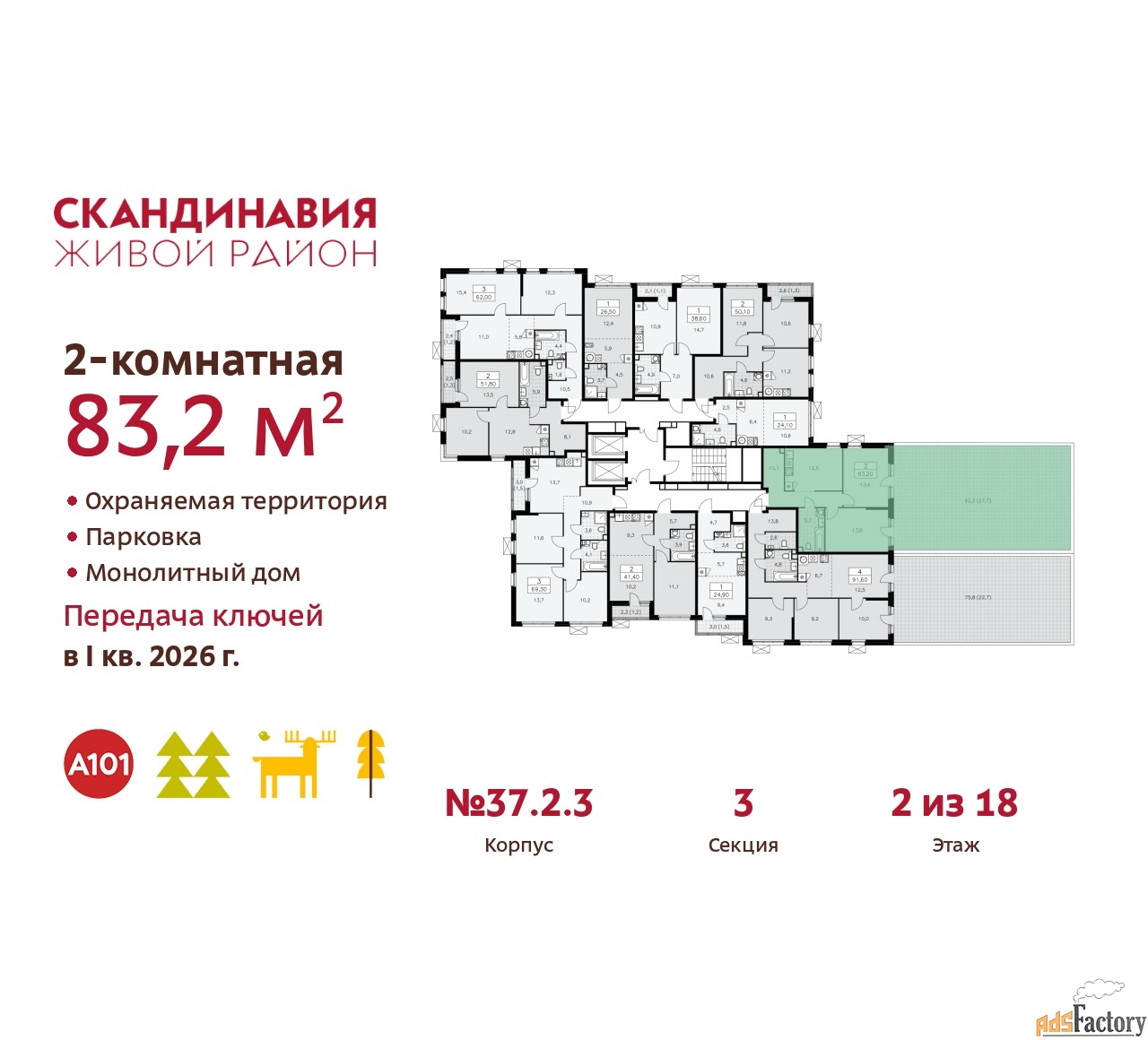 Квартира находится в корпусе 37.2.3. Дом монолитный, одноподъездный, высотой 18 этажей. На этаже 11 квартир. В подъезде 2 грузовых лифта. Начало строительства - 3 квартал 2023 года. Окончание строительства - 1 квартал 2026 года. Оформление сделки по договору долевого участия.