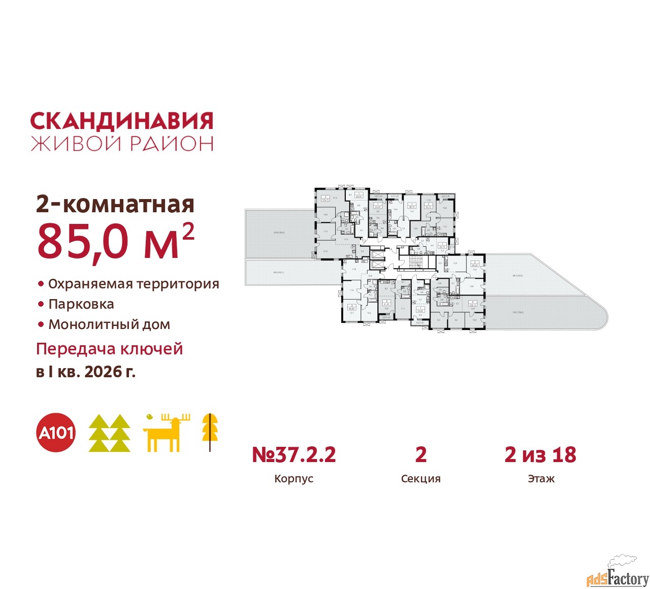 ЖК «Скандинавия» - один из проектов компании А101, известной своей надежностью. Жилой комплекс расположен на юго-западе Москвы в 6-ти километрах от МКАД в окружении Бутовского лесопарка, район Коммунарка. Рядом открылись новые станции метро.