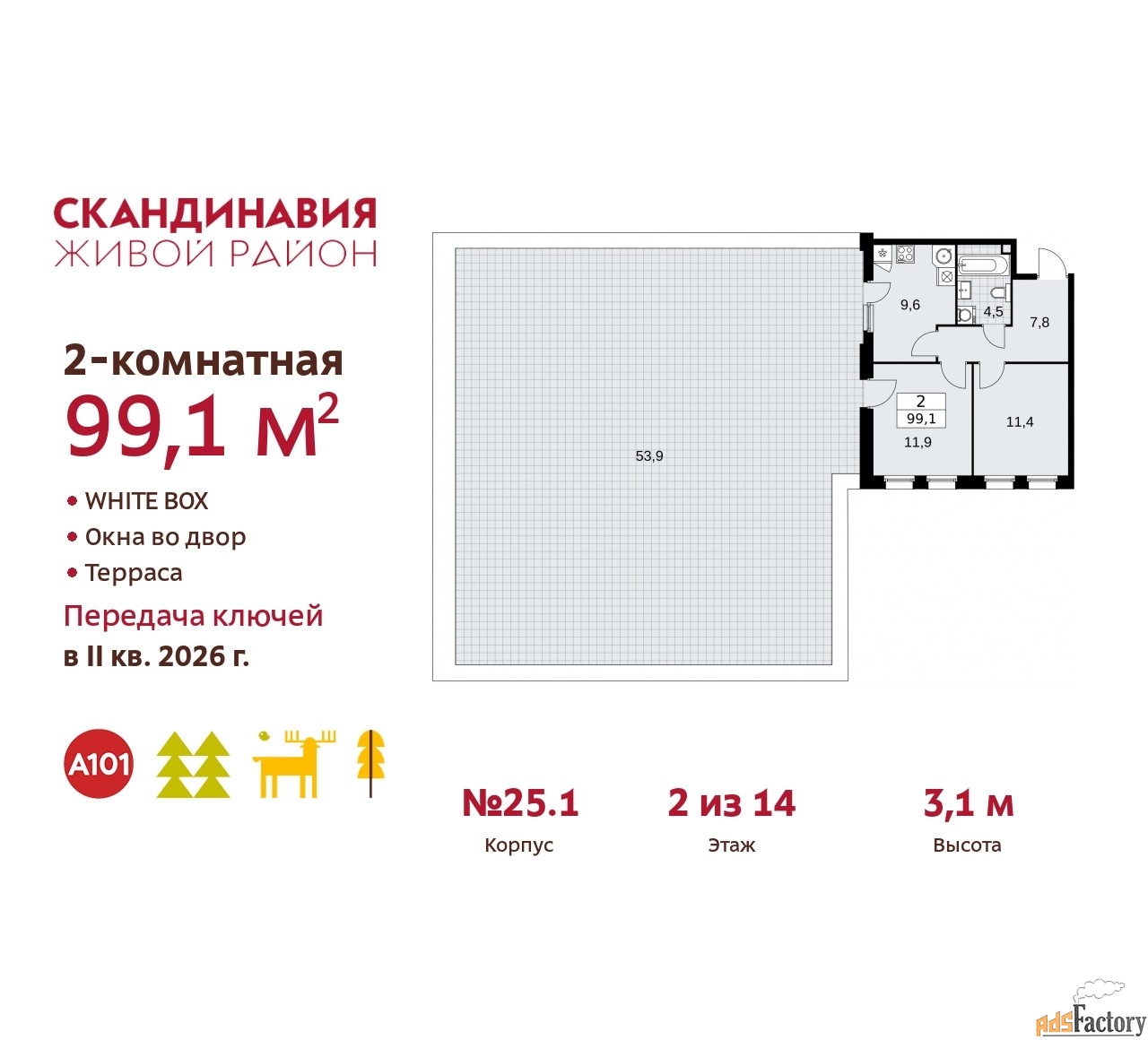 В квартире будет выполнена отделка WHITE BOX. На полу стяжка, стены выровнены и отшпаклеваны, проложены все электрокабели с подрозетниками и выключателями, готовы выводы под установку сантехники.