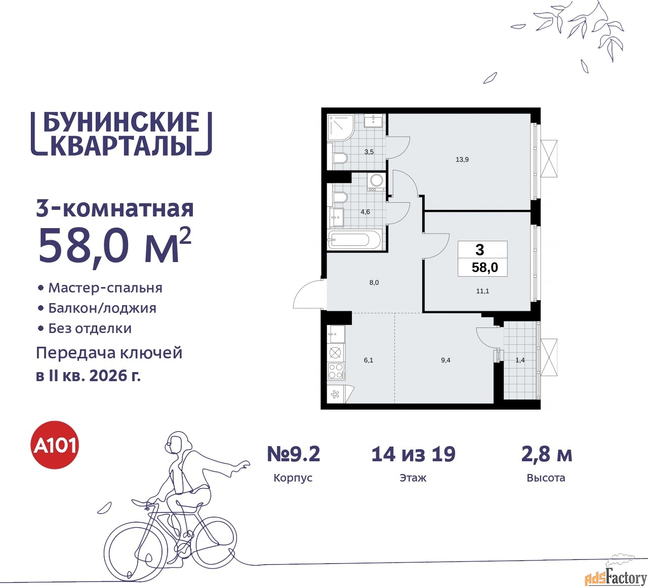| Общая площадь (кв.м) | 58 |