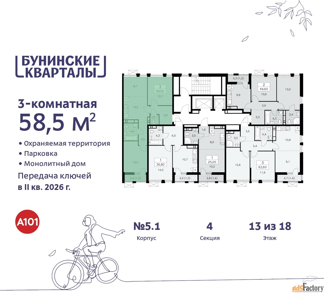 | Общая площадь (кв.м) | 58.5 |