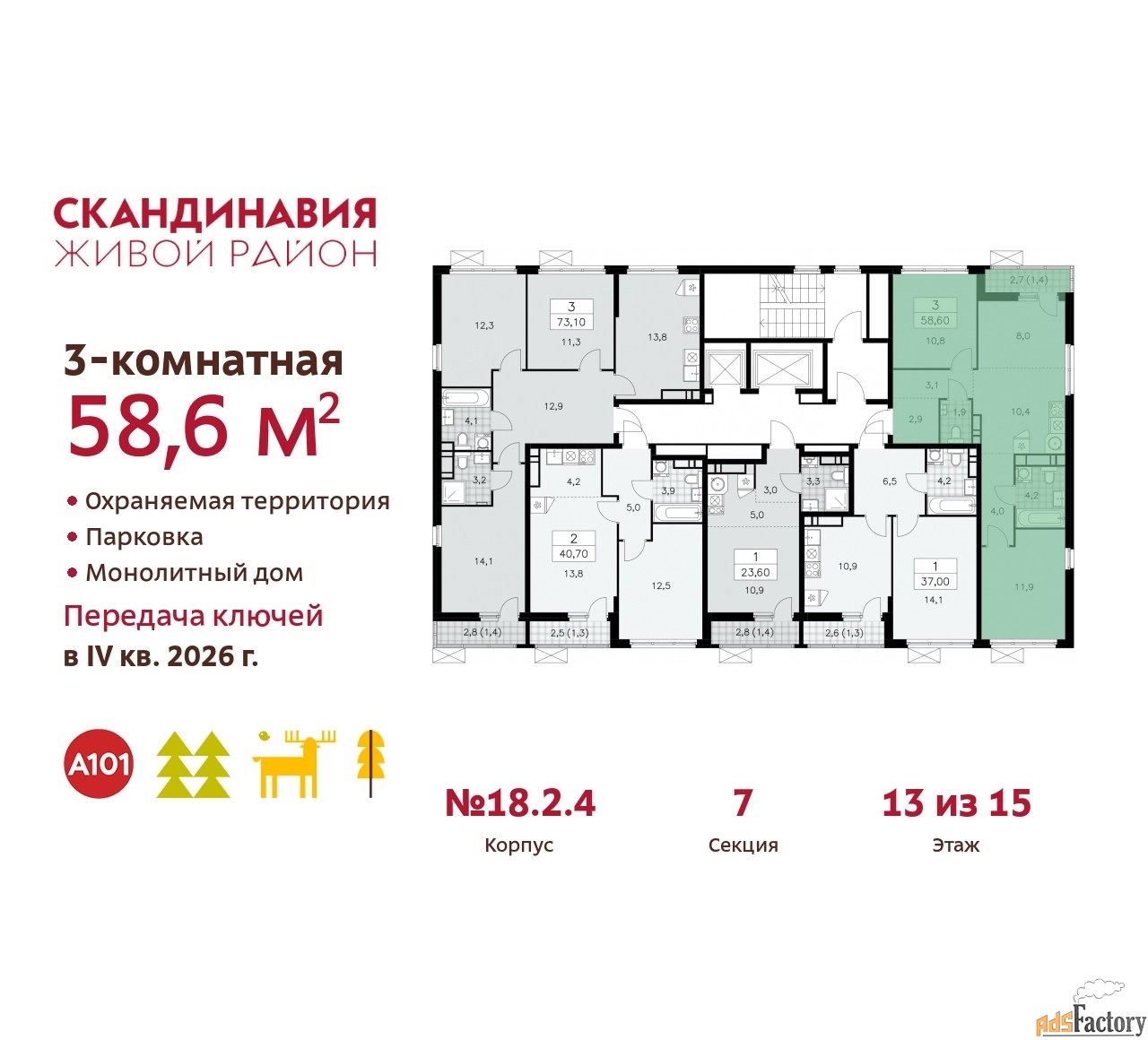 | Общая площадь (кв.м) | 58.6 |