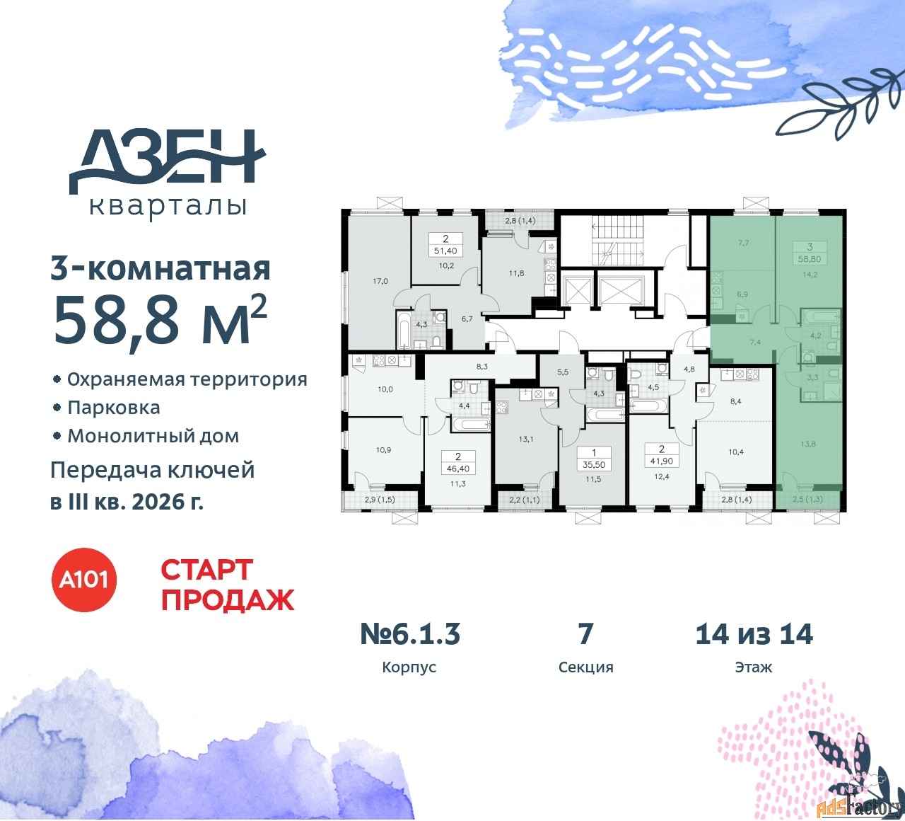 Артикул квартиры по базе застройщика 41К-6.1.3-501.