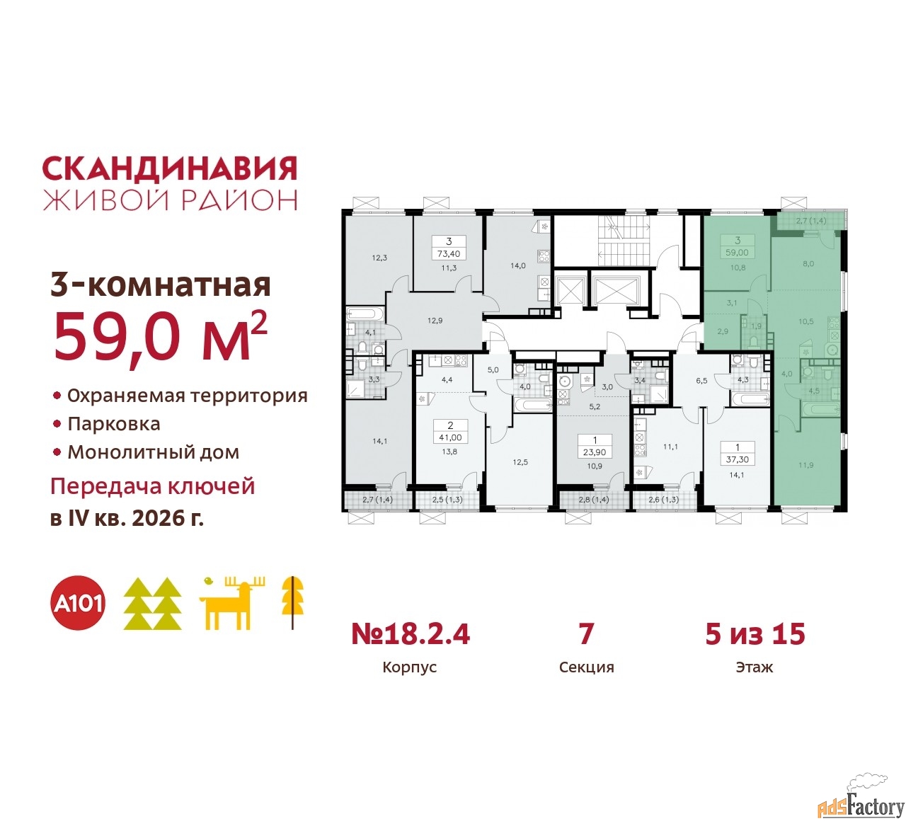 Артикул квартиры по базе застройщика 23К-18.2.4-497.