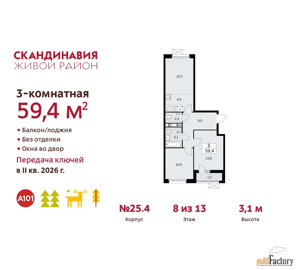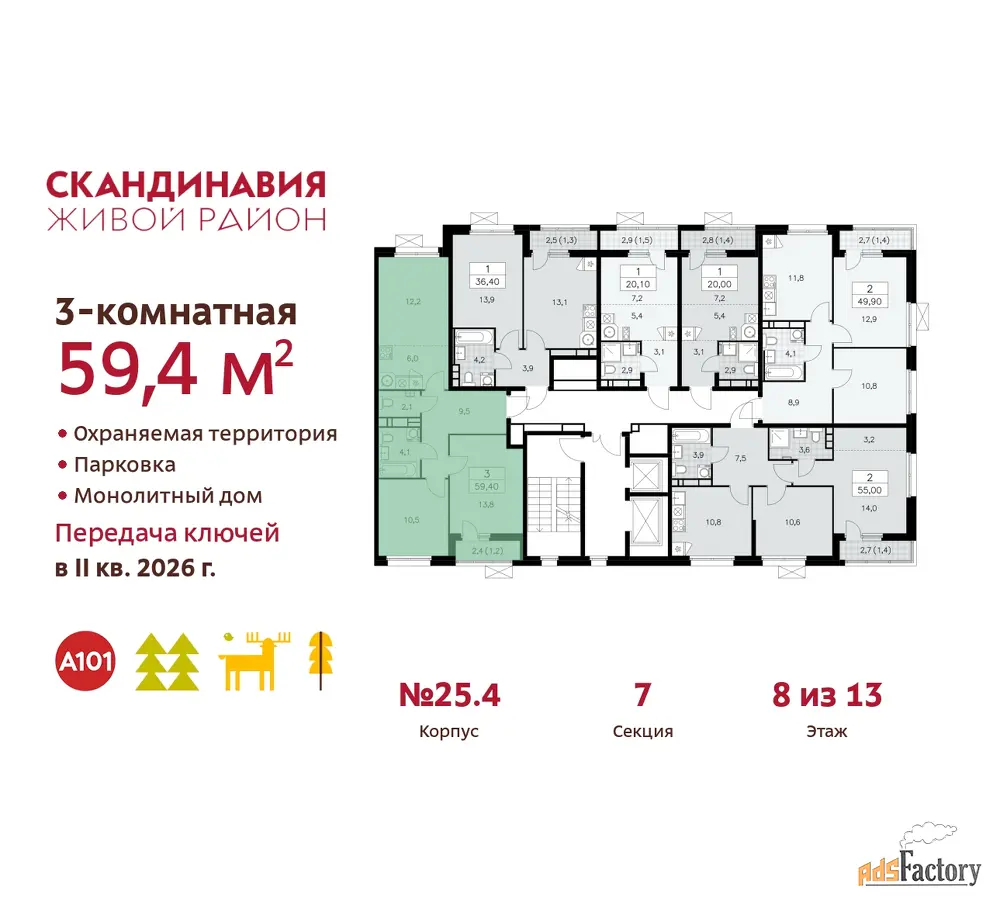 В пешей доступности находятся школы, детские сады, магазины, кафе, поликлиника, спортивная школа, отделение почты, дом культуры и пр. объекты инфраструктуры. ЖК «Скандинавия» находится в 15-минутной доступности до 3 веток метро. Автомобилисты могут воспользоваться выездом на Калужское шоссе (4,7 км). (AQID02284209)