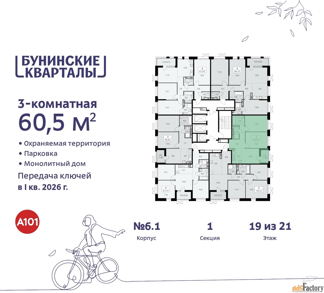| Общая площадь (кв.м) | 60.5 |