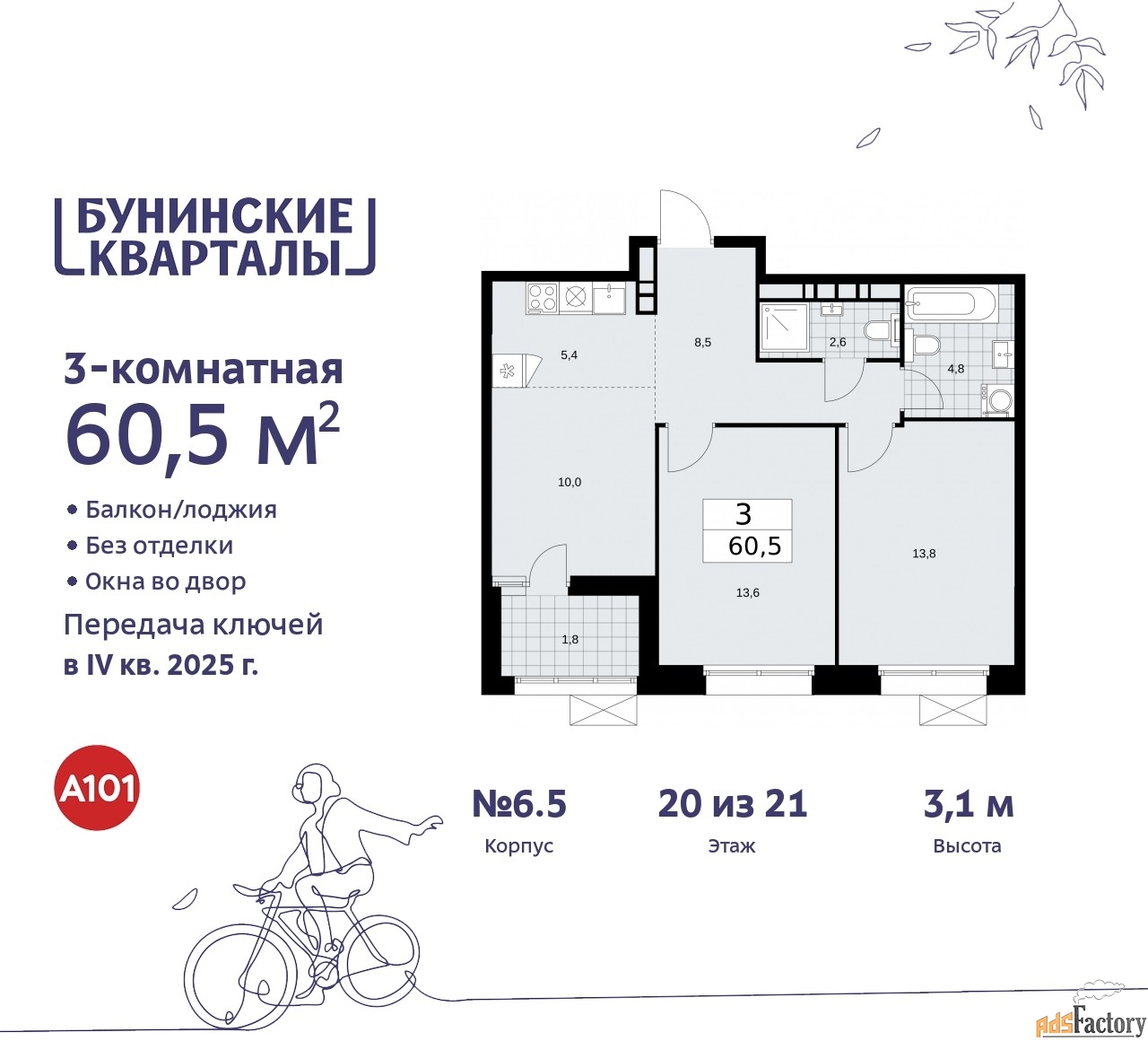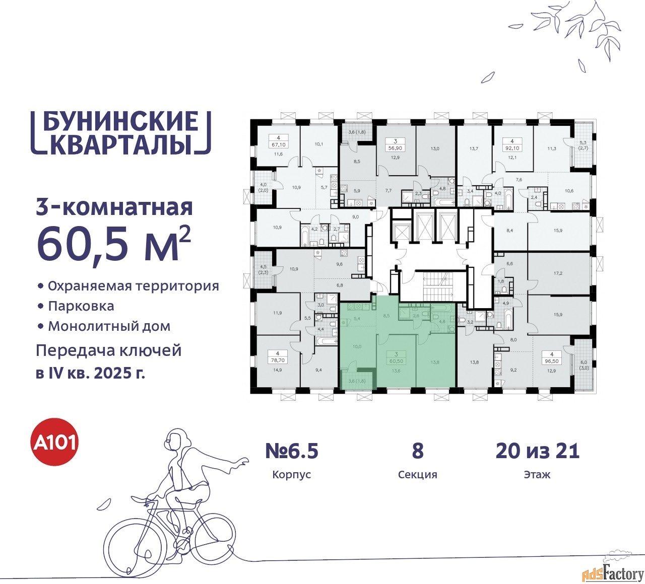 Квартира находится в корпусе 6.5. Дом монолитный, одноподъездный, высотой 21 этаж. На этаже 9 квартир. В подъезде 1 пассажирский и 2 грузовых лифта. Начало строительства - 3 квартал 2023 года. Окончание строительства - 2 квартал 2026 года. Оформление сделки по договору долевого участия.