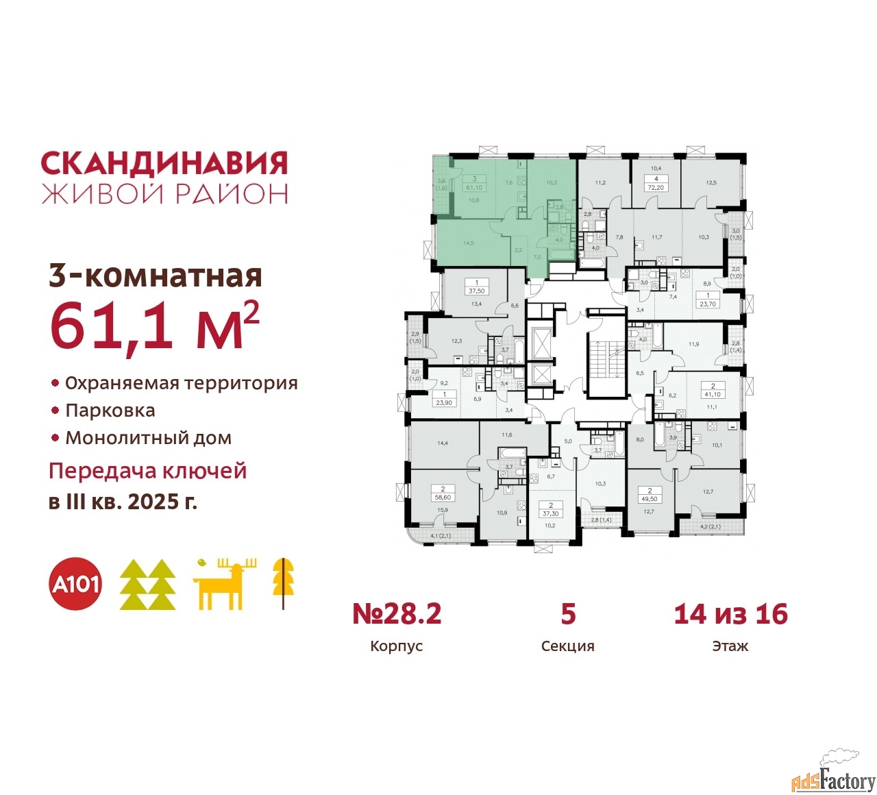 | Общая площадь (кв.м) | 61.1 |