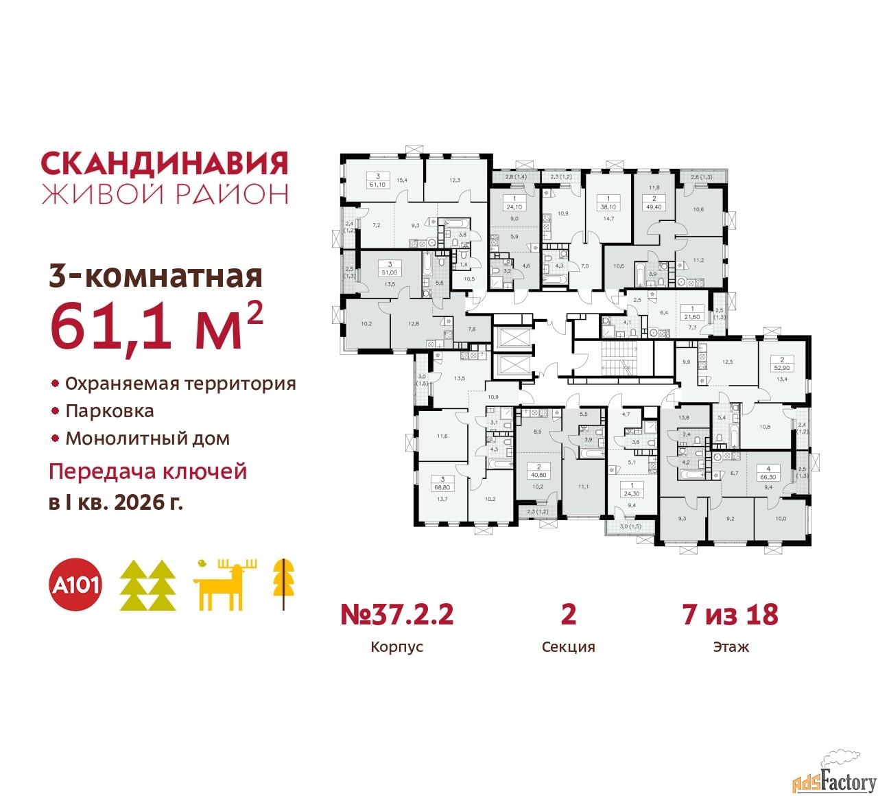Квартира находится в корпусе 37.2.2. Дом монолитный, одноподъездный, высотой 18 этажей. На этаже 11 квартир. В подъезде 2 грузовых лифта. Начало строительства - 3 квартал 2023 года. Окончание строительства - 1 квартал 2026 года. Оформление сделки по договору долевого участия.