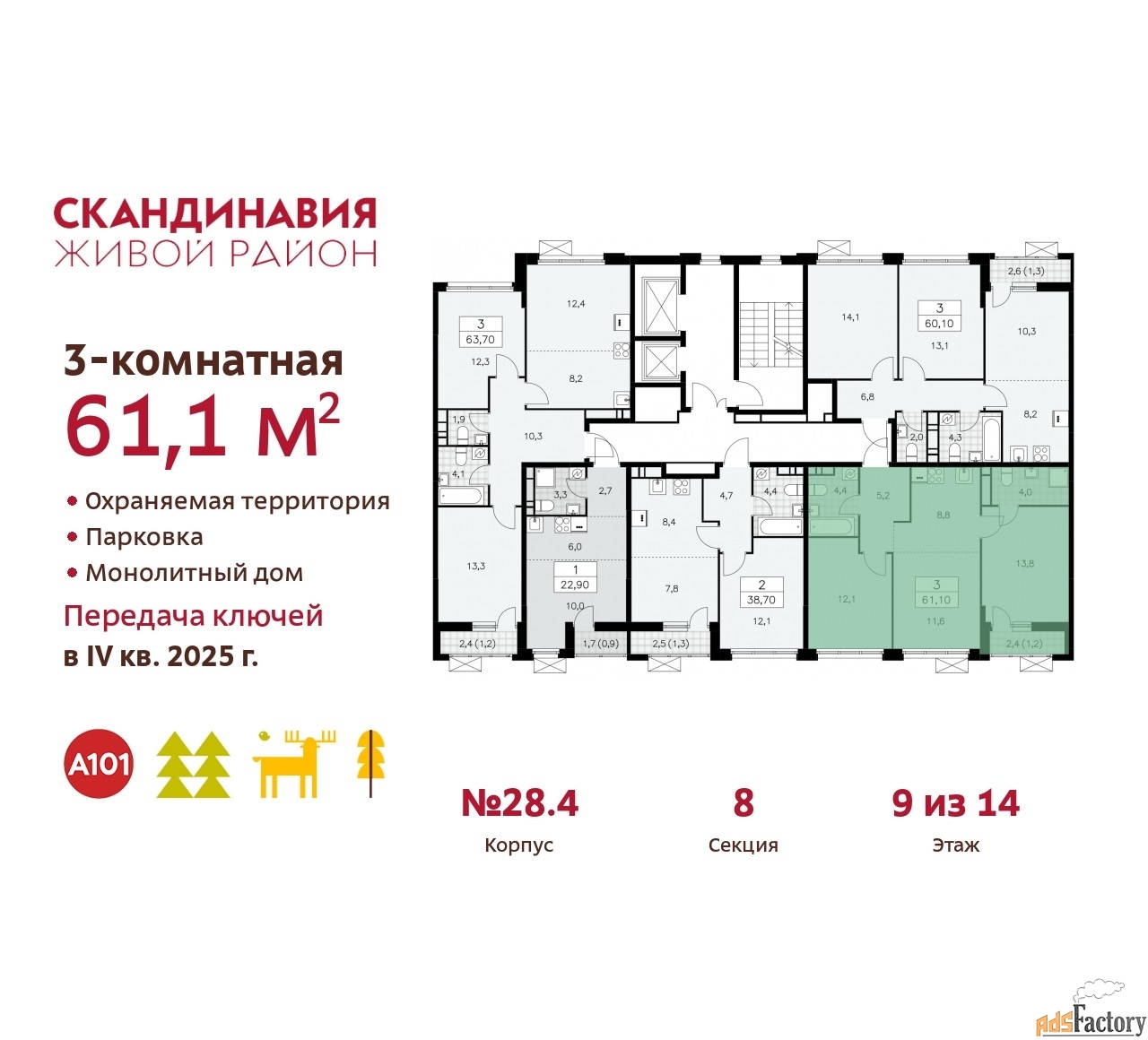 Артикул квартиры по базе застройщика 24К-28.4-673.