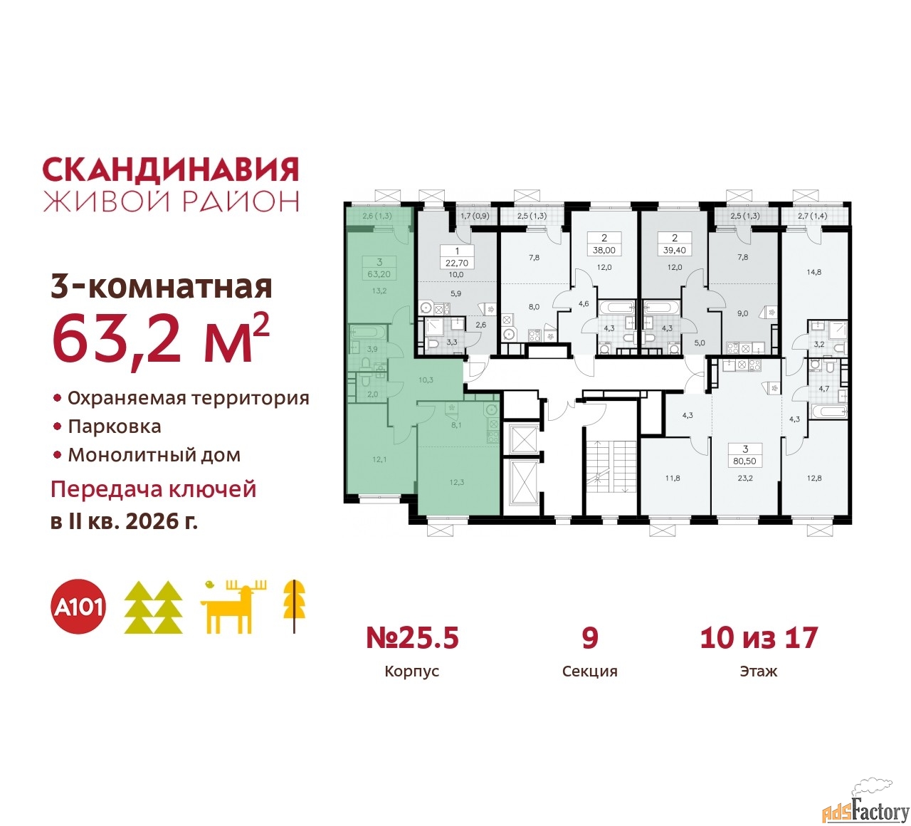 В пешей доступности находятся школы, детские сады, магазины, кафе, поликлиника, спортивная школа, отделение почты, дом культуры и пр. объекты инфраструктуры. ЖК «Скандинавия» находится в 15-минутной доступности до 3 веток метро. Автомобилисты могут воспользоваться выездом на Калужское шоссе (4,7 км). (AQID02283717)