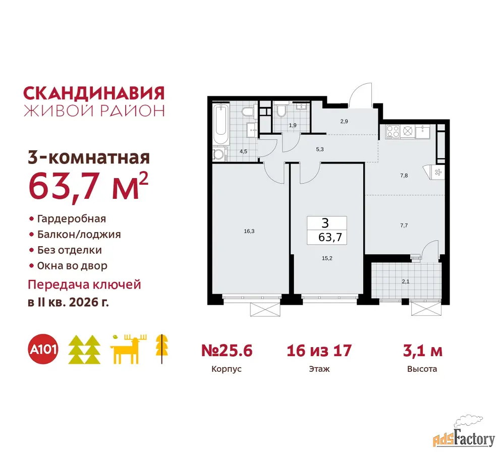 Квартира будет сдана без отделки. Установлены стеклопакеты с повышенной тепло- и шумоизоляцией, установлены элементы отопления, входная дверь, заведены все коммуникации. Имеется ниша под гардероб.