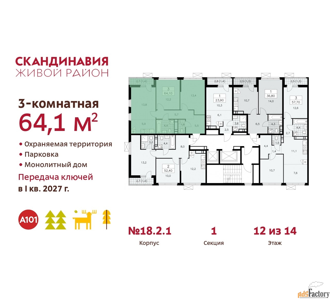 Артикул квартиры по базе застройщика 23К-18.2.1-52.