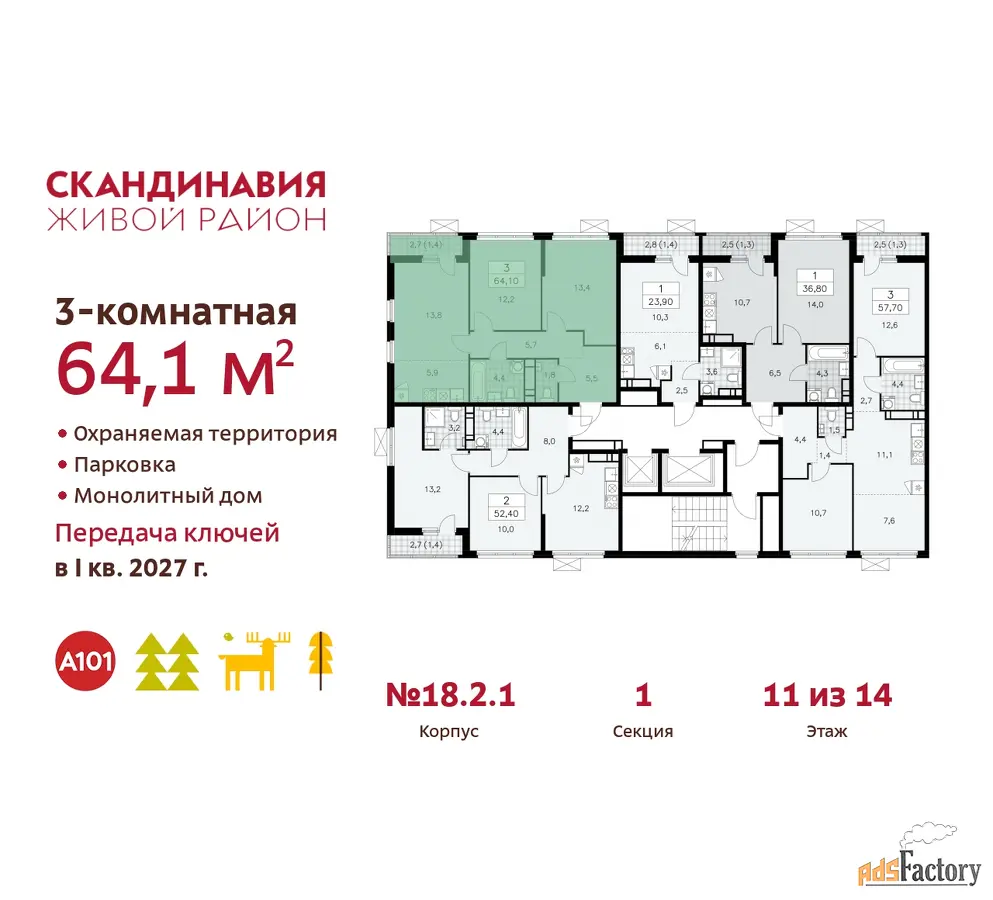 | Общая площадь (кв.м) | 64.1 |