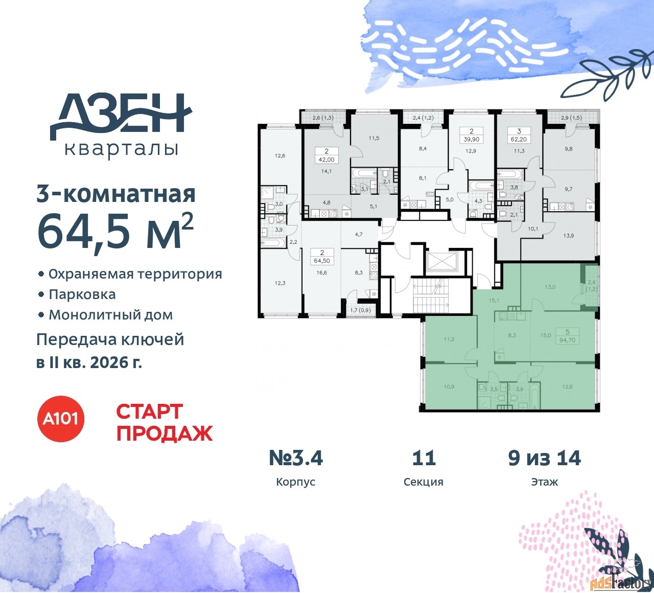 | Общая площадь (кв.м) | 64.5 |