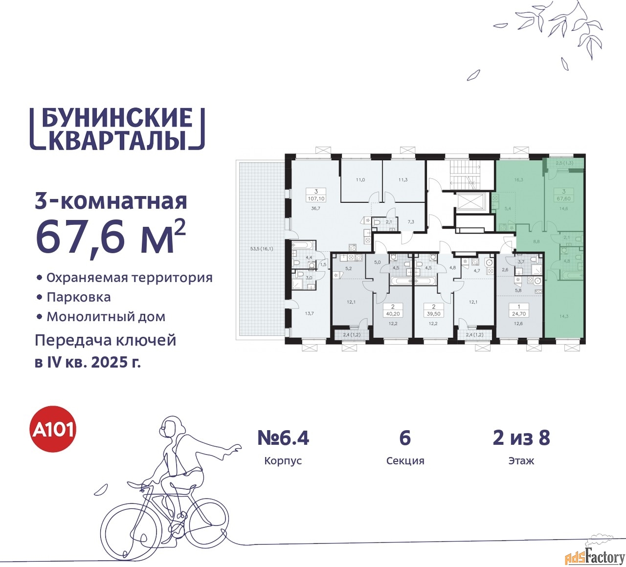 Дом монолитный, двухподъездный, высотой 8 этажей. Квартира находится в 1-й секции в корпусе бизнес-класса 6.4. На этаже 5 квартир. В подъезде 1 грузовой лифт. Начало строительства - 3 квартал 2023 года. Окончание строительства - 4 квартал 2025 года. Оформление сделки по договору долевого участия.