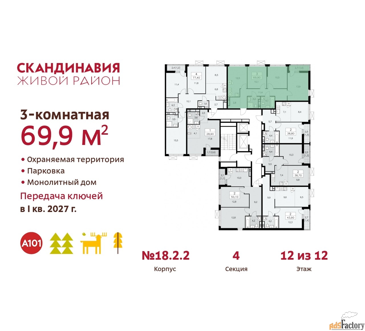 Часть корпусов микрорайона «Скандинавия» уже заселены, полностью сформирована вся инфраструктура: больницы, детские сады, школы, магазины. Отличительная особенность жилого комплекса - невысокие дома, просторные дворы без машин, комфортная благоустроенная придомовая территория. (AQID02351309)