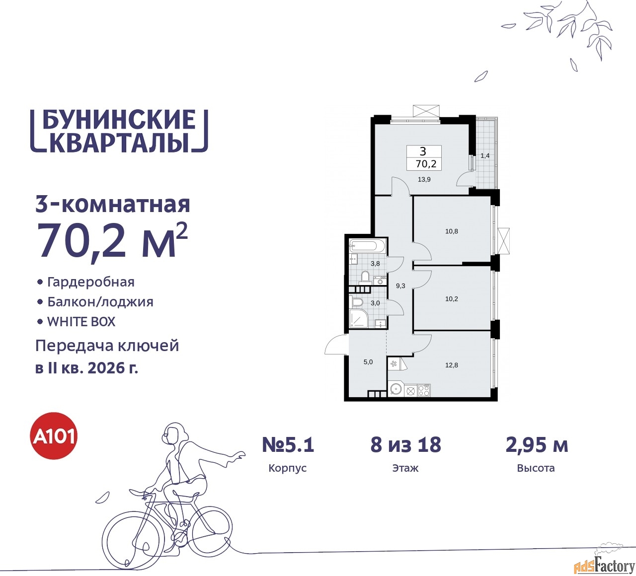 Дом монолитный, многоподъездный, переменной этажности, от 9 до 18 этажей. Квартира находится в 5-й секции высотой 9 этажей в корпусе 5.1. На этаже 8 квартир. В подъезде 1 грузовой лифт. Начало строительства - 4 квартал 2023 года. Окончание строительства - 2 квартал 2026 года. Оформление сделки по договору долевого участия.