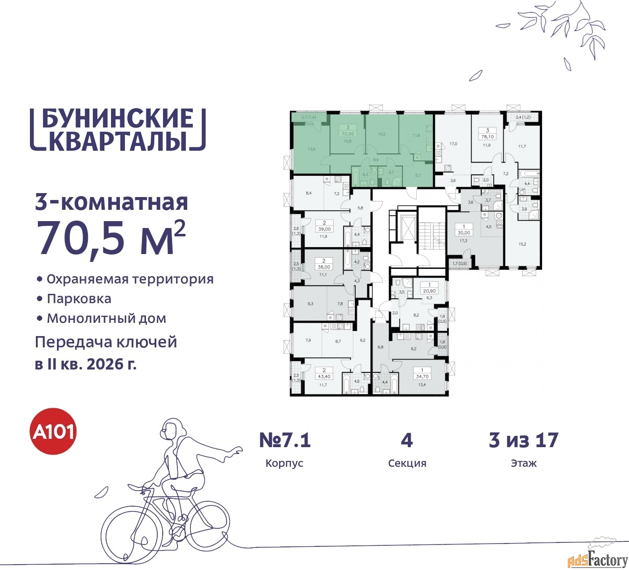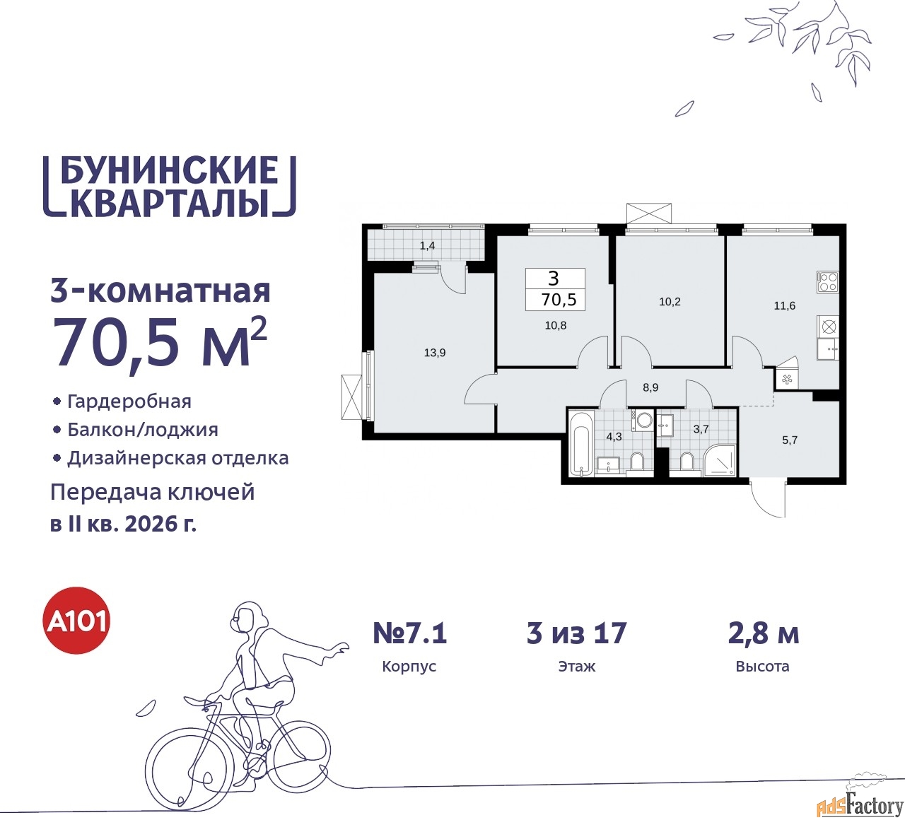 | Общая площадь (кв.м) | 70.5 |