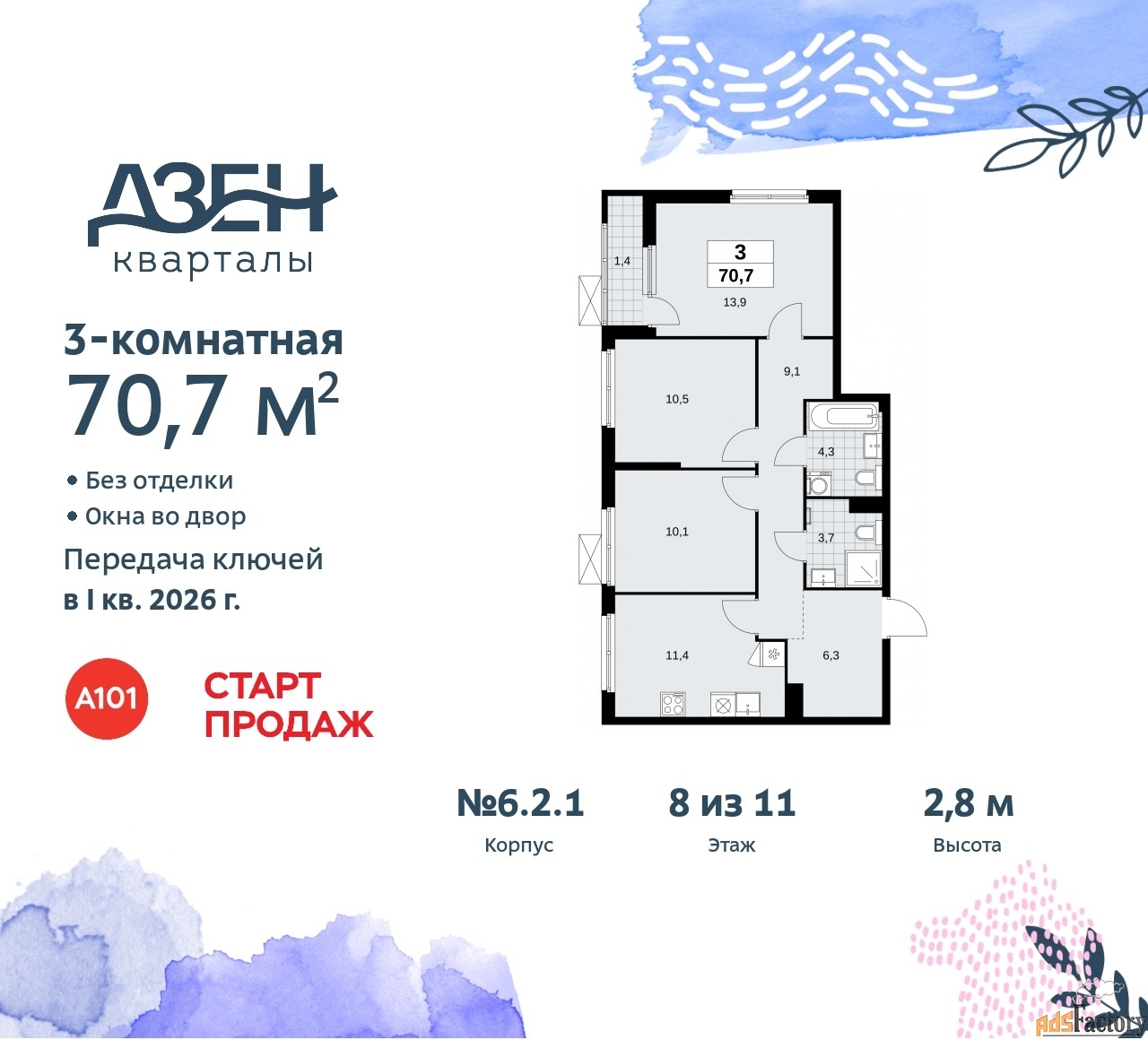 | Общая площадь (кв.м) | 70.7 |