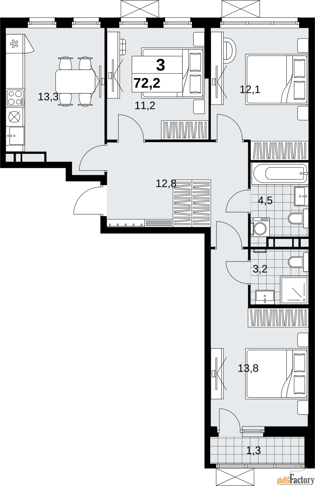 Корпус 2.18.2.2 в ЖК «Скандинавия», в котором расположена квартира, будет построен в 2027 году. Дом монолитный, в корпусе 2 подъезда, есть 1 пассажирский и 1 грузовой лифт.