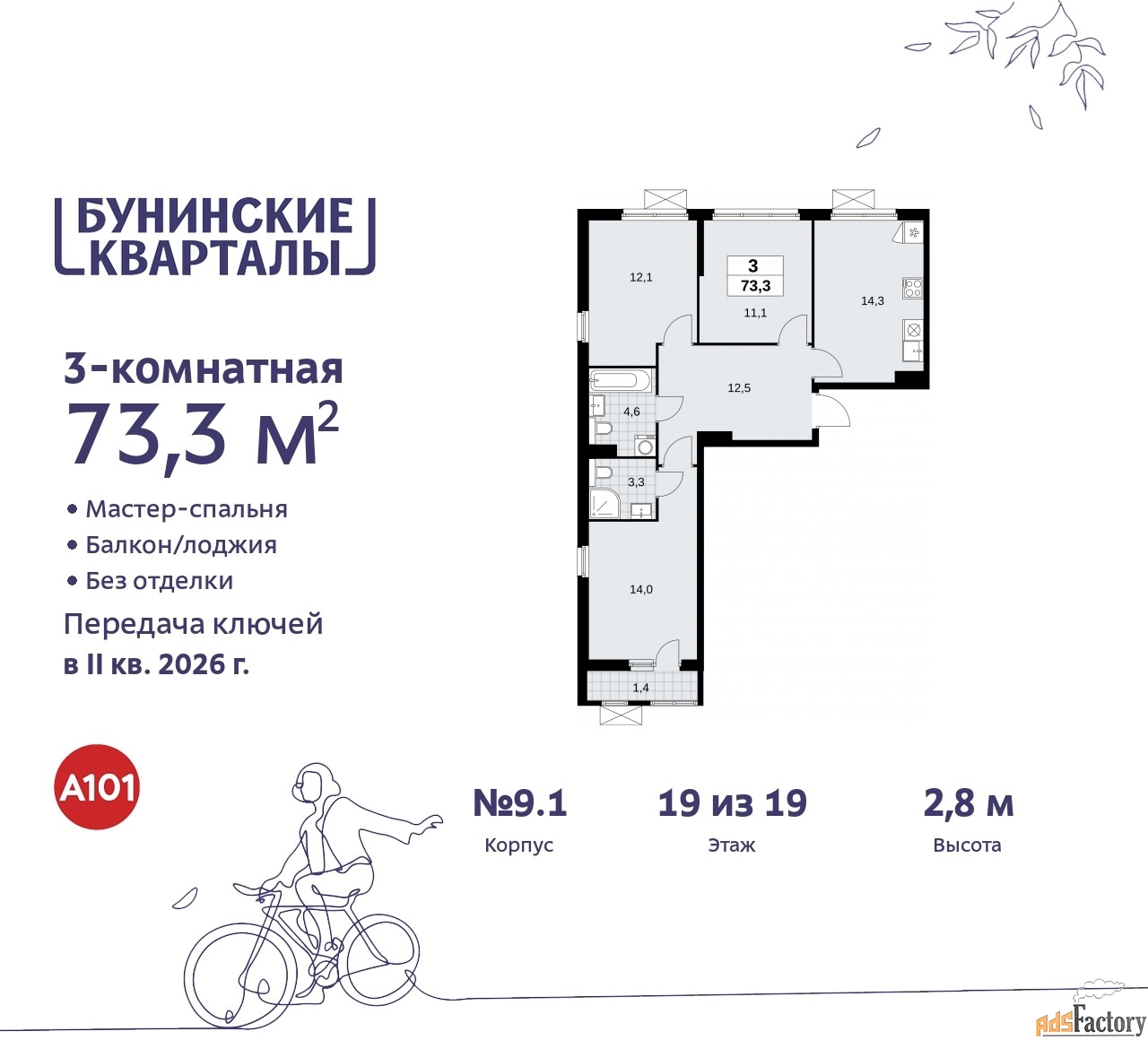 Артикул квартиры по базе застройщика 14К-9.1-434.