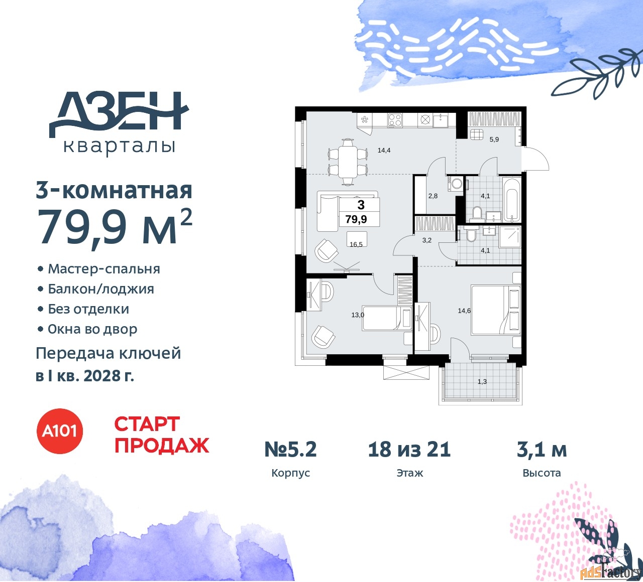 | Общая площадь (кв.м) | 79.9 |