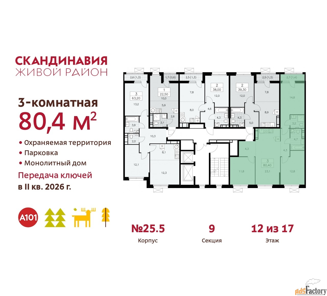 В пешей доступности находятся школы, детские сады, магазины, кафе, поликлиника, спортивная школа, отделение почты, дом культуры и пр. объекты инфраструктуры. ЖК «Скандинавия» находится в 15-минутной доступности до 3 веток метро. Автомобилисты могут воспользоваться выездом на Калужское шоссе (4,7 км). (AQID02283731)