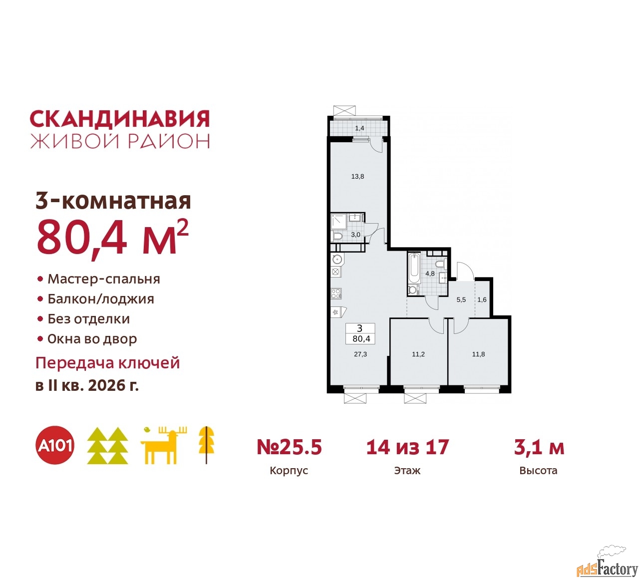 | Общая площадь (кв.м) | 80.4 |