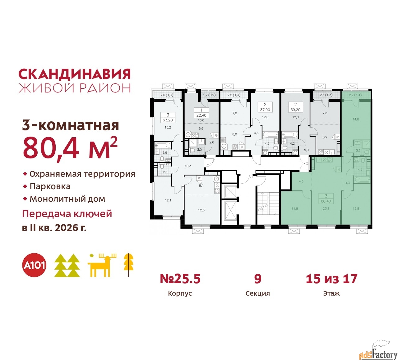 Микрорайон возводится в уже сложившемся районе Новой Москвы, где для детей уже построены детские сады и школа, а для взрослых работают магазины, банки и кафе. (AQID02283746)