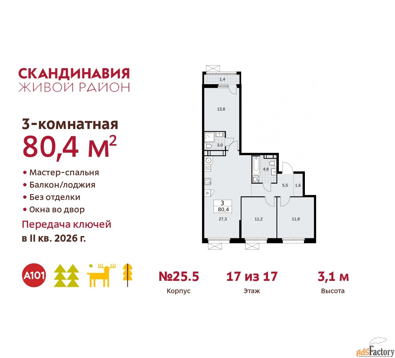 ЖК «Скандинавия» - один из проектов компании А101, известной своей надежностью. Жилой комплекс расположен на юго-западе Москвы в 6-ти километрах от МКАД в окружении Бутовского лесопарка, район Коммунарка. Рядом открылись новые станции метро.